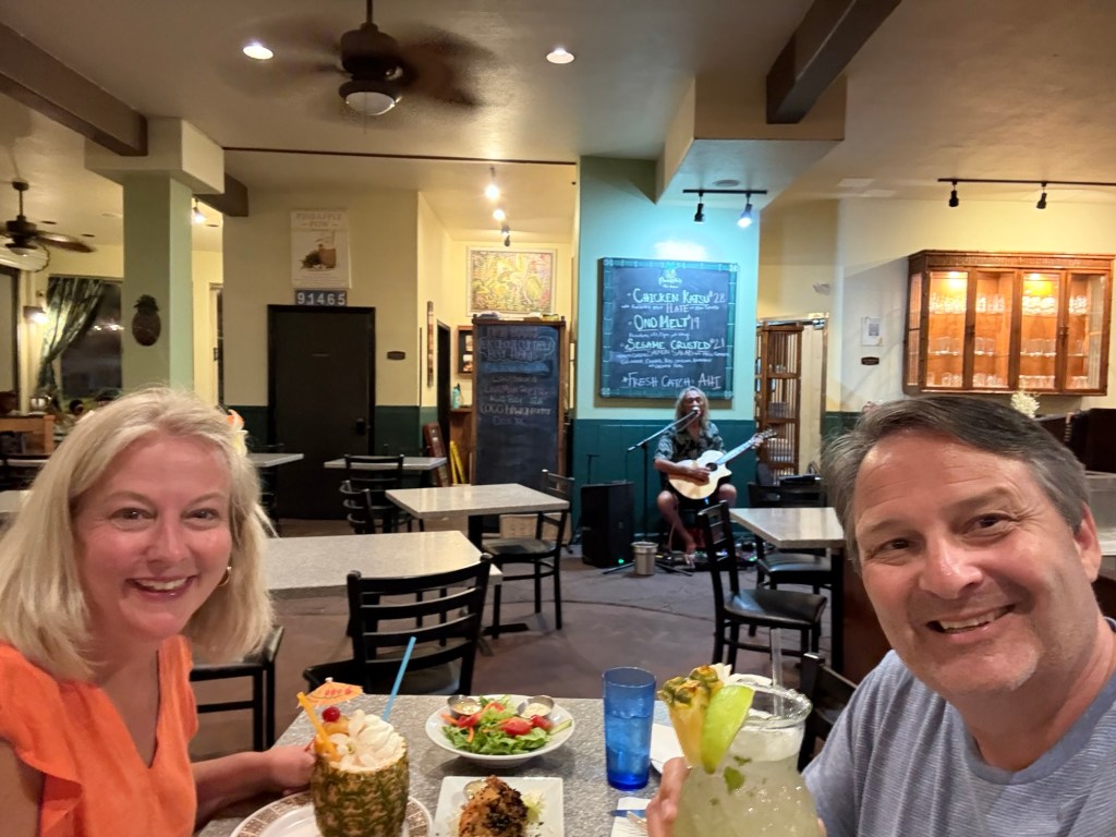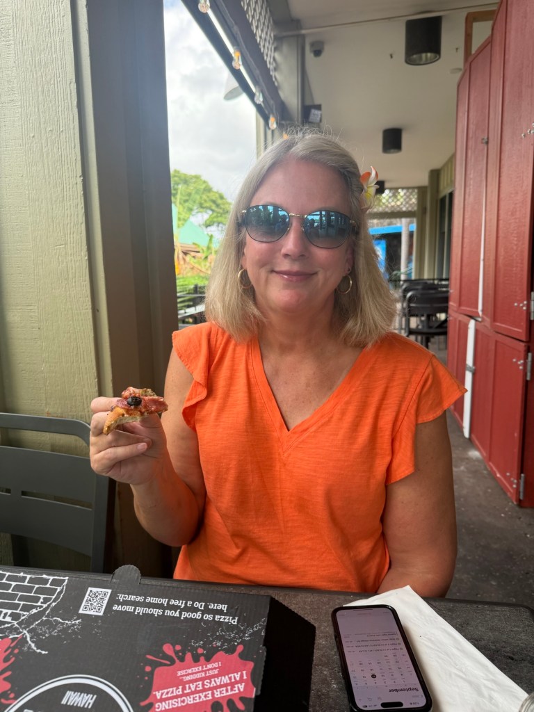 Today we changed from the west side of the big island to the east side, which is much more lush and green. We had a fantastic pizza lunch at Black Rock pizza, and got our rental car from the aiport.