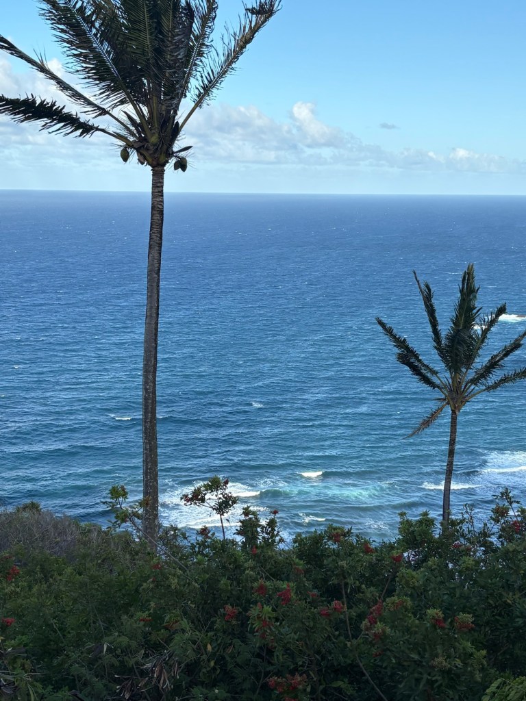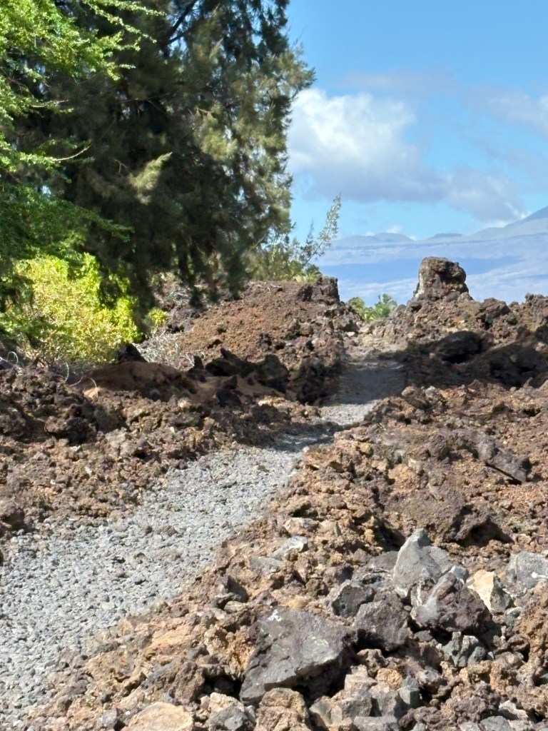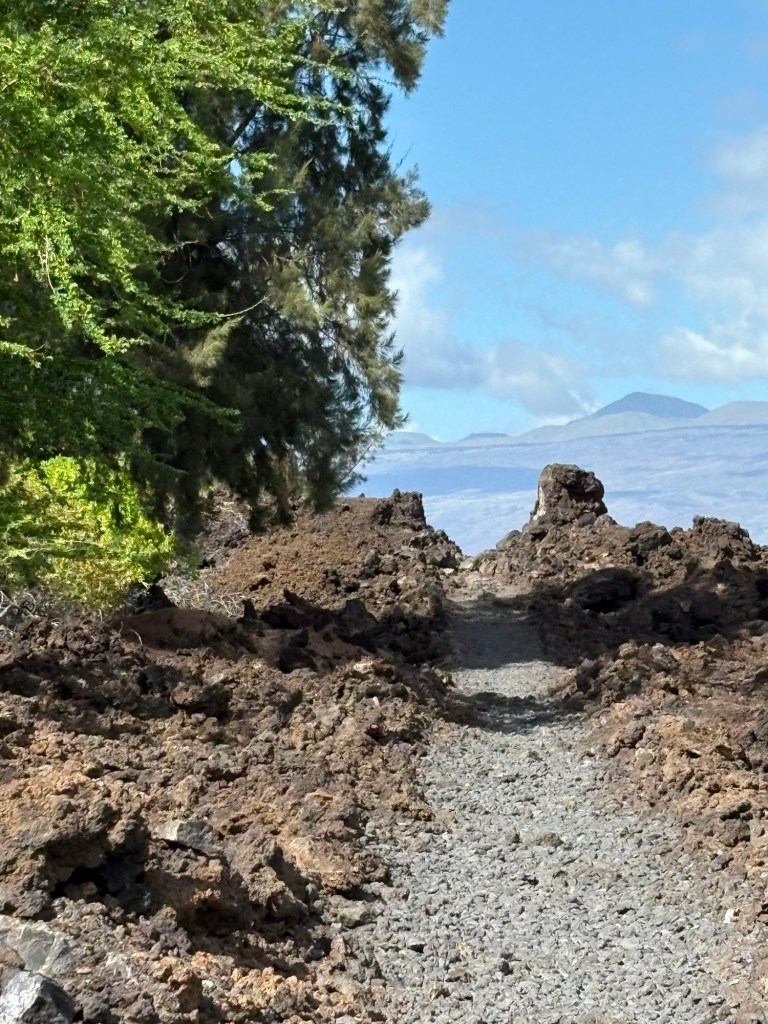 We had downloaded an audio guide (Guide Along, formerly Gypsy Guide- thanks Stan and Christie!) that we used to keep us up on the sights we were passing and information about Hawaii. Today we drove the roads on the north side of the island, taking the side jaunt up to Pololu Valley overlook. It was a beautiful drive, and we passed thru multiple types of terrain, starting in dry volcanic rock and going thru lush rainy tropical areas as well. Such diverse landscapes! We stopped at some local markets, and then went up near our previous resort to see the King’s Trail.