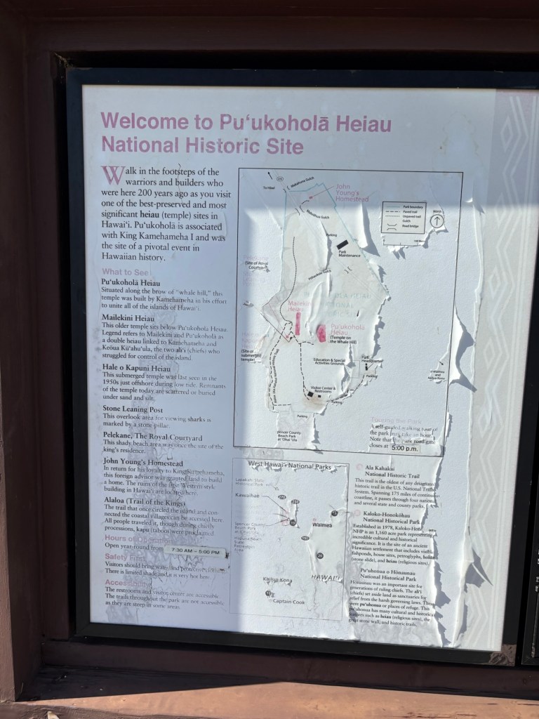 Our next historic stop was Pu’ukohola Heiau, which was the fortress that King Kamehameha was foretold that if he built it, he would become a ruler and unify the Hawaiian islands (which he later did). Lots of sad stories of sacrifices and sharks and sunken fortresses on this site, but an interesting and pretty walk, nevertheless.