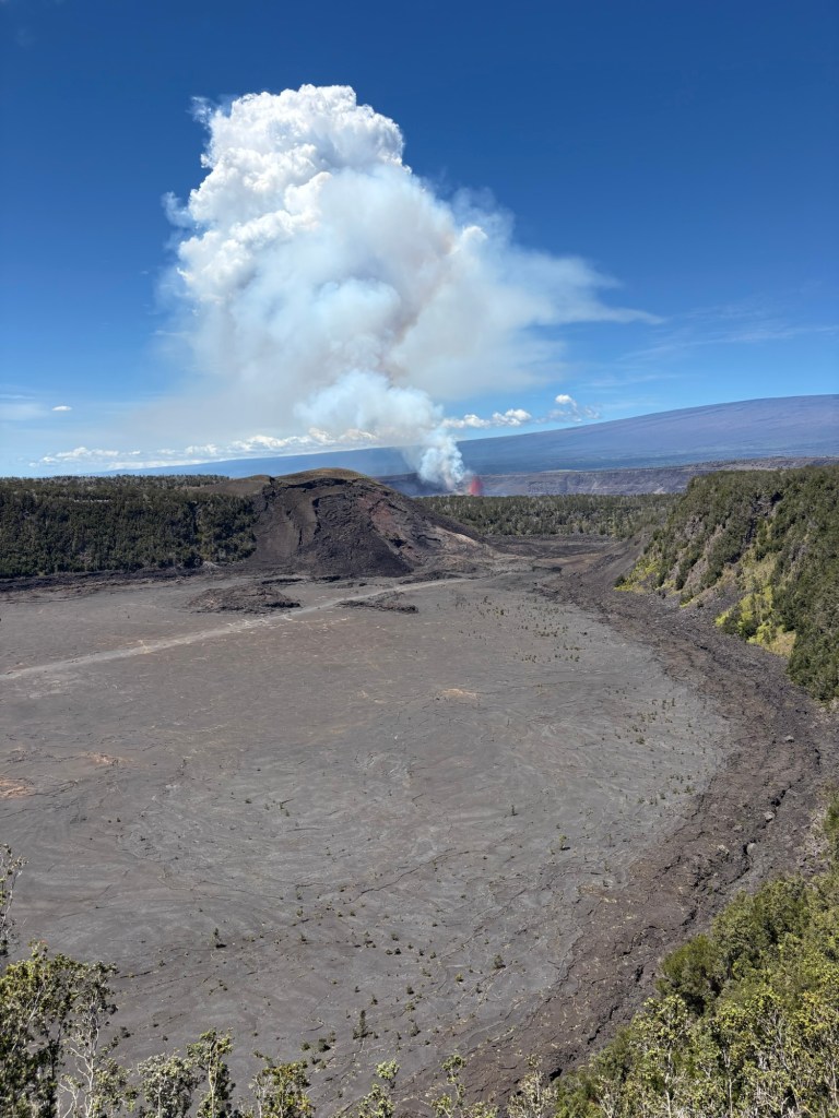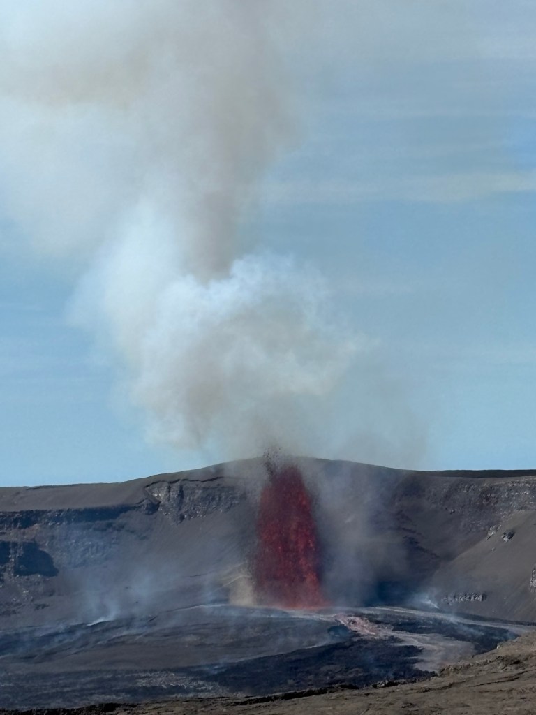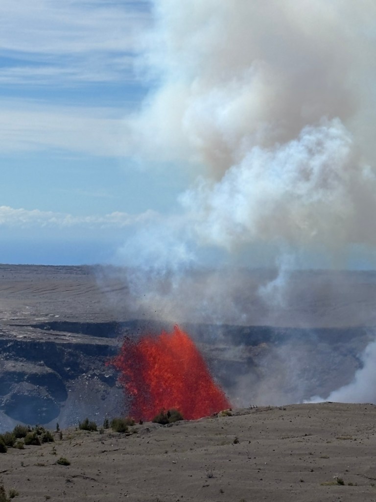 UPDATE: On our way home from Volcanoes National Park, we heard on the radio that the Kīlauea eruption event has already ended! This eruption lasted only nine hours, and somehow we were fortunate enough to see it!! Lucky us! 🍀