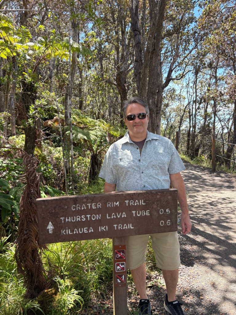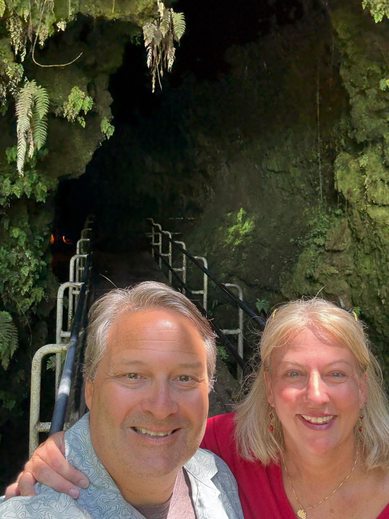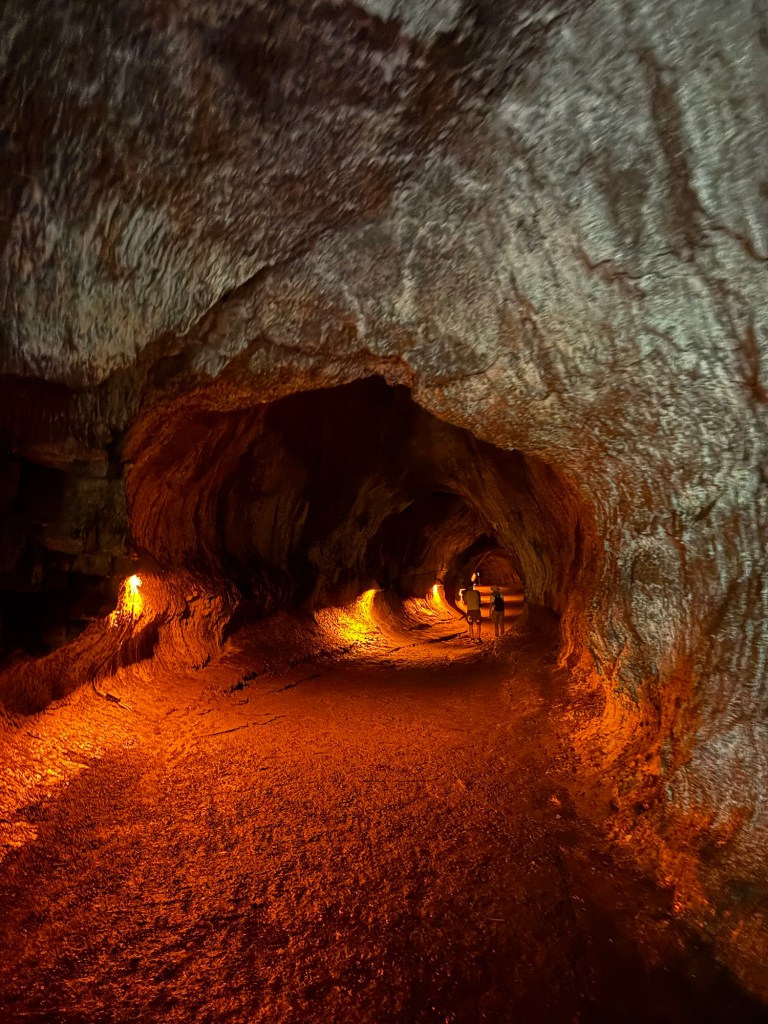 We parked at the Kīlauea Iki Overlook and took the forested hike down the path to the Thurston Lava Tube, which was one of my favorite stops in the park. This underground Lava tube was cool and dark, and surprisingly huge! It was so neat to walk through it (and cool down!), and think that it once had a vein of hot lava shooting through it right where we walked. Wild!