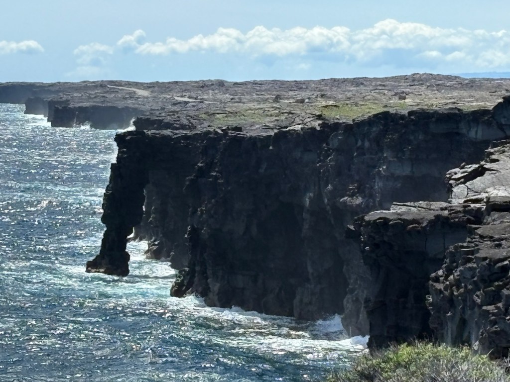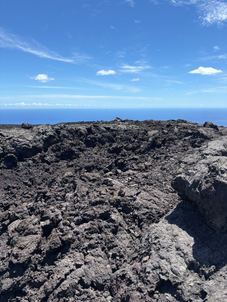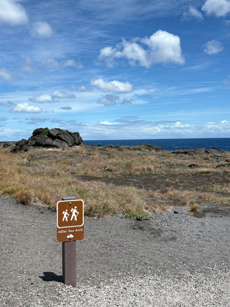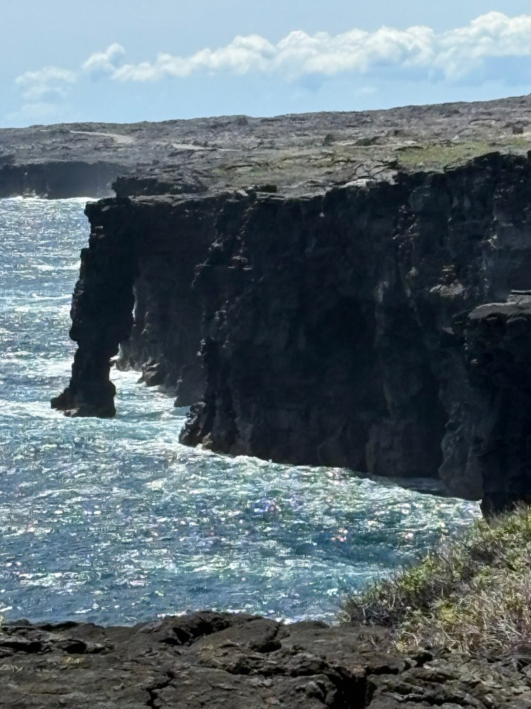 We drove 19 miles down the (awesomely named) Chain of Craters Road, passing by many cool craters and reminders of Hawaii’s volcanic past (and present!). The lava fields themselves can be so different, with some of them being full of cinder cones/rocks and some looking like the “dribble (sand)castles” we used to make on the beach as kids in Florida. The arch itself is “new”, having formed in the past 100 years. The 30 degree temperature difference between the volcano overlook (at 4000 feet) and the hot, humid 95 degrees arch at sea level was pretty brutal- not going to lie. I basically did a pike tsukahara back to the air conditioned car after seeing the arch.
