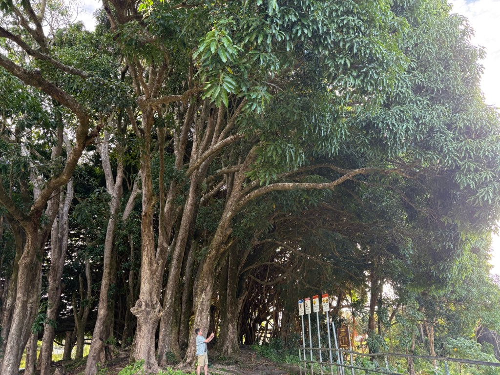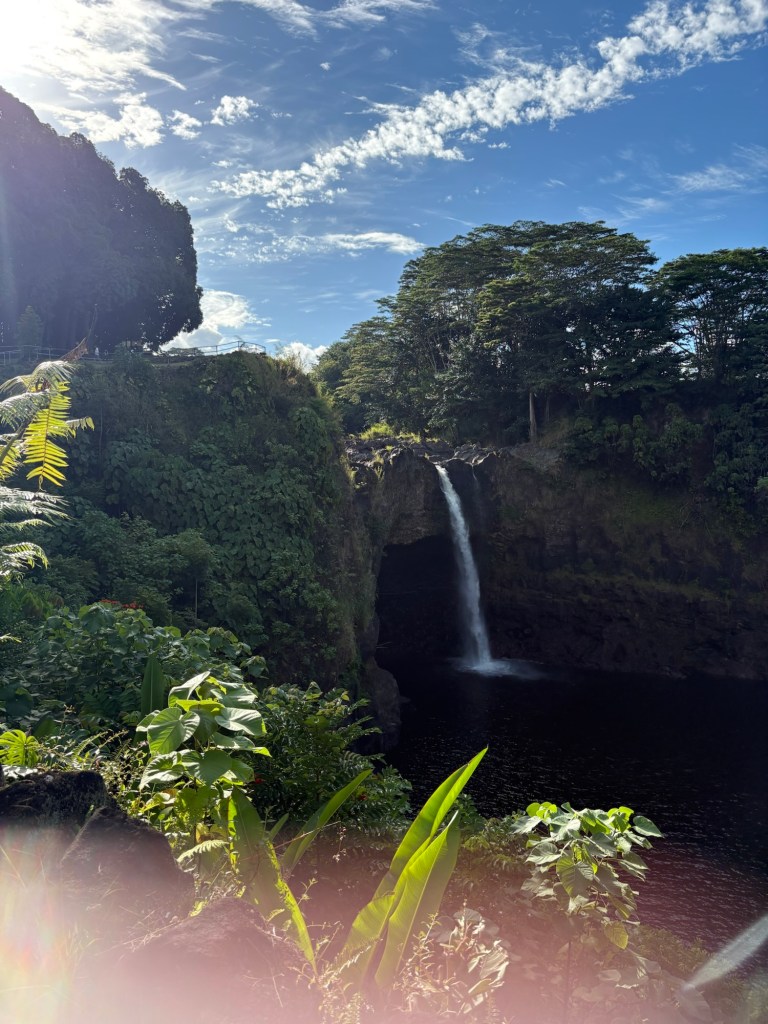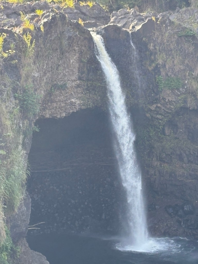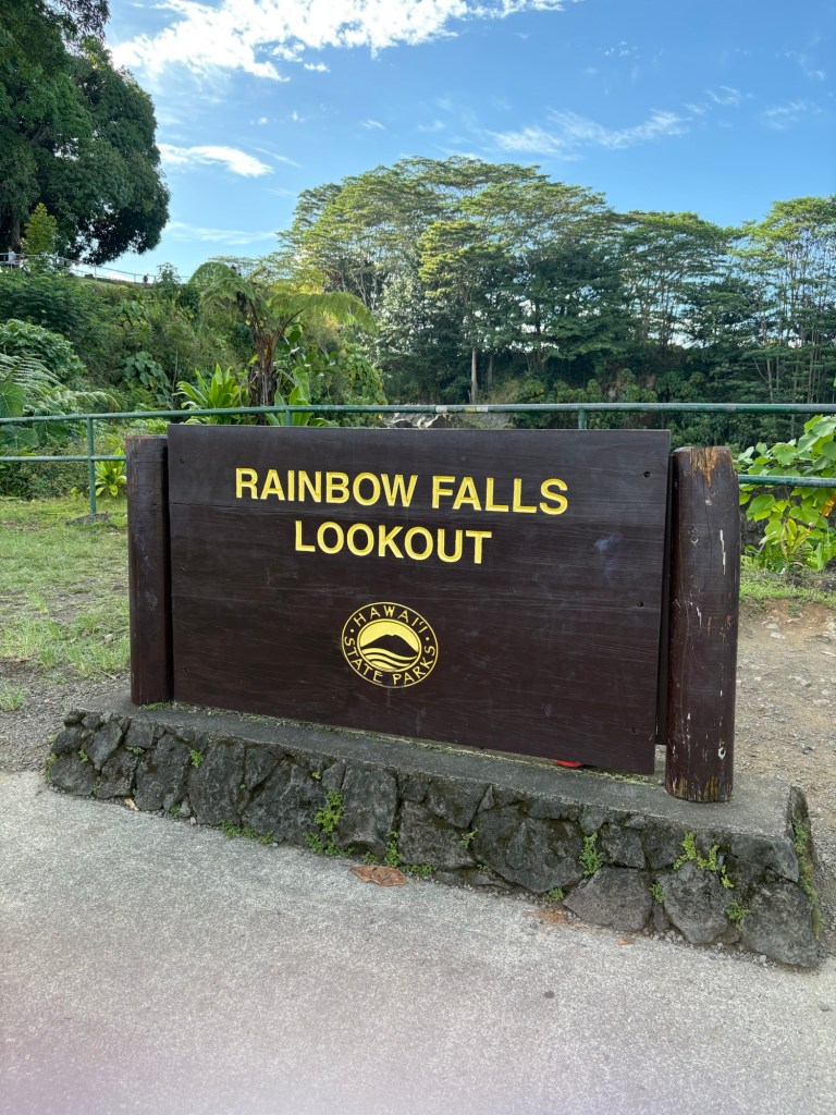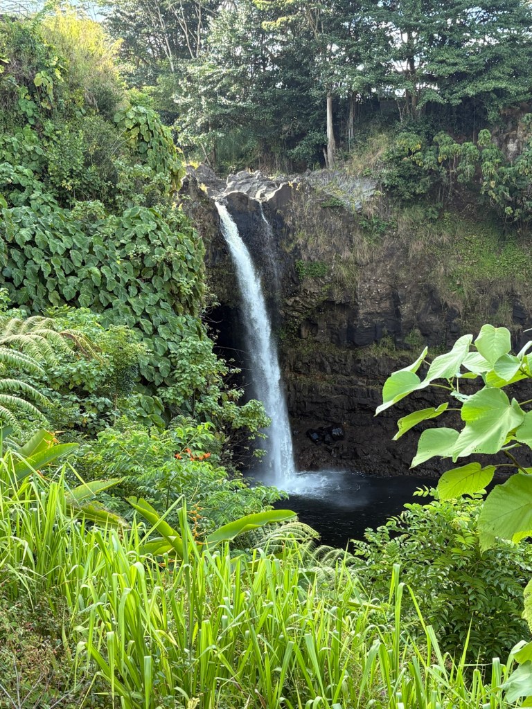 After we left the park and stopped for a late lunch, our final sightseeing stop of the day was Rainbow Falls right here in Hilo. This pretty 80 foot waterfall is known for having rainbows in it’s mist on sunny days, but we were unfortunately rainbow-less this afternoon. It was still nice to see!