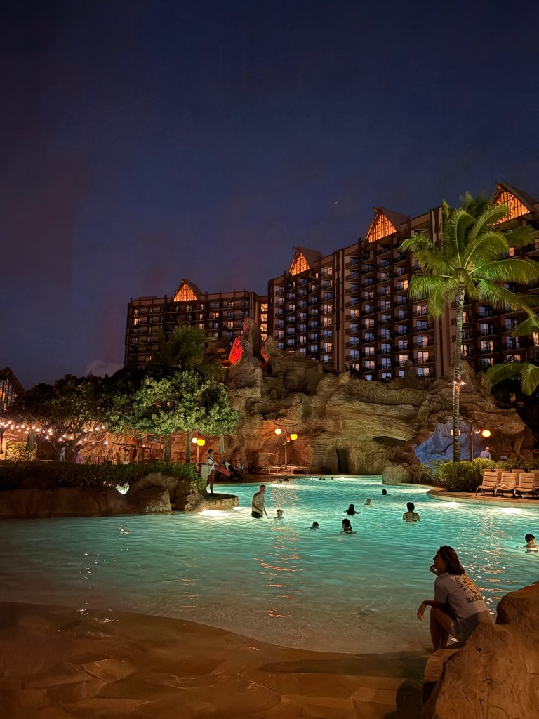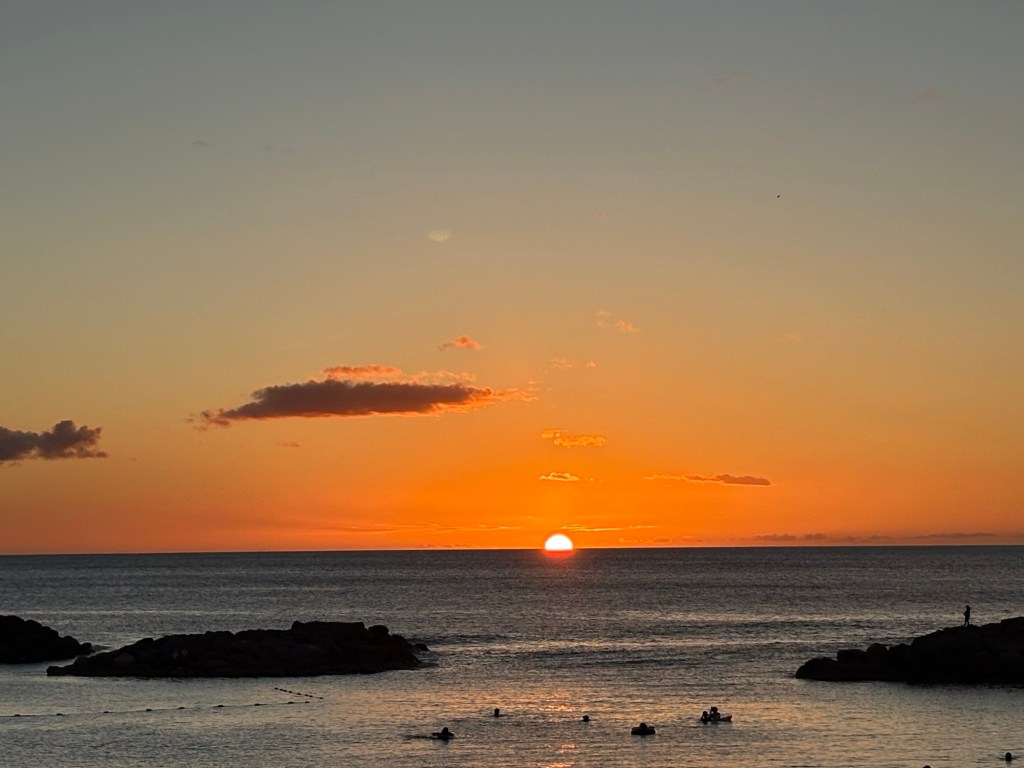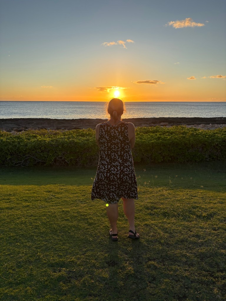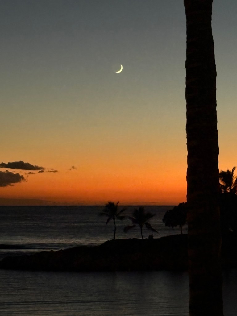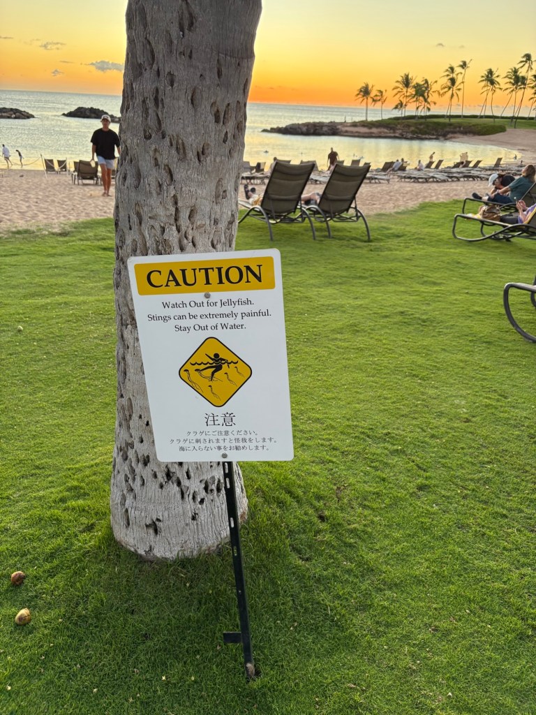 After we checked in we headed right back out with our Guide Along app, and braved the Honolulu traffic to go to the Ko Olina area of town and start our explorations. We actually stayed out here last time we came to Oahu in 2012, and as a surprise for Jenna we spent a few nights in Disney’s Aulani Resort. It was a gorgeous area that has built up significantly since our last visit, and they have four swim and snorkel sheltered lagoons around all the resorts in the area. We went for a nice snorkel at Lagoon 4. While it was a pretty snorkel area with a good variety of fish, most fish were very small in the lagoon and it just couldn’t compare to our Big Island experience yesterday at Punalu’u and Two Steps. After snorkeling we walked a long path that connects all the lagoons and watched a marvelous Oahu sunset. We visited the Aulani resort briefly, which was as beautiful as we remembered, and then headed to dinner at Monkeypod. We split a salad and a fish sandwich and a piece of butterscotch pie for a very yummy dinner in a fun atmosphere. A great start to our Oahu adventures!