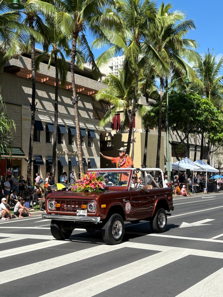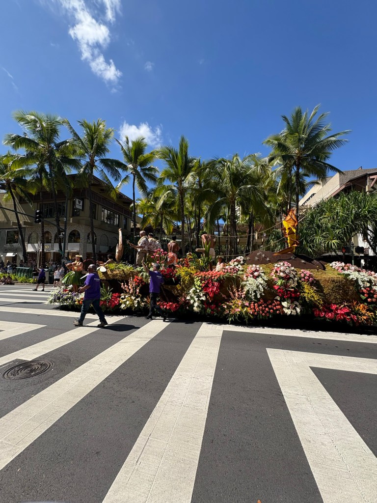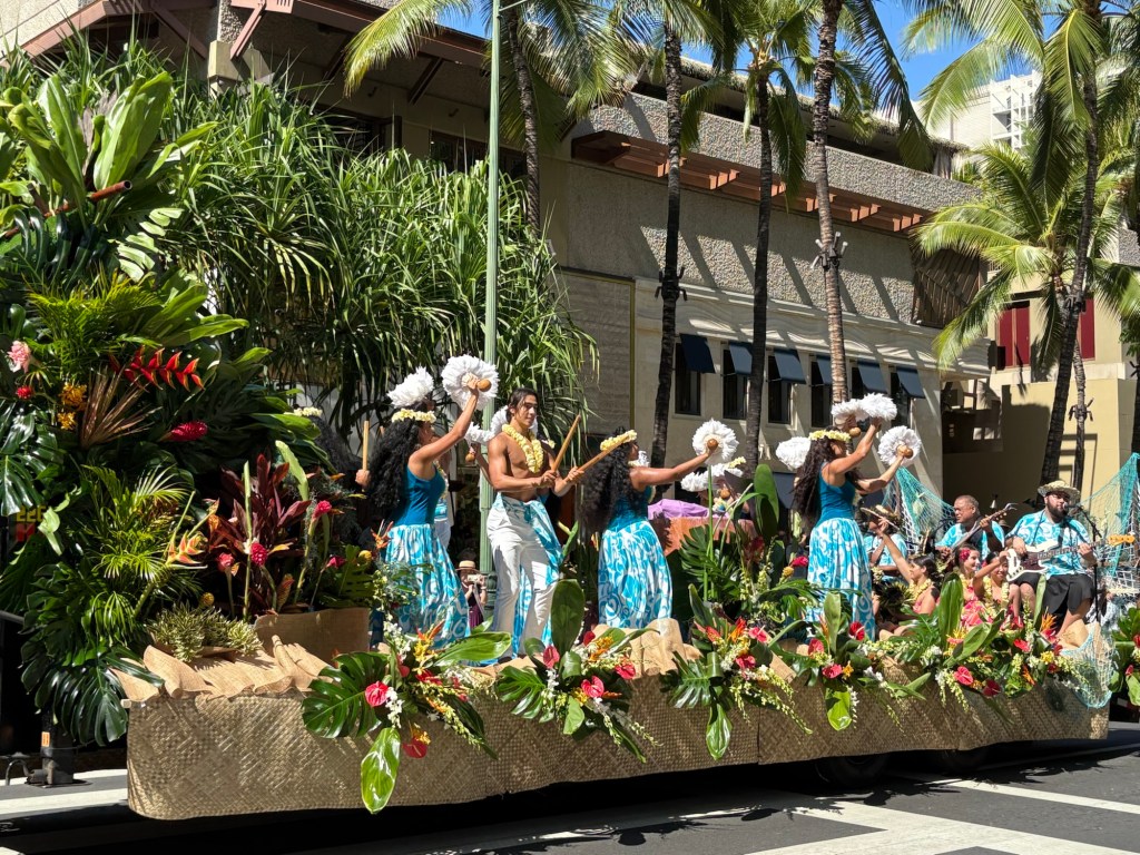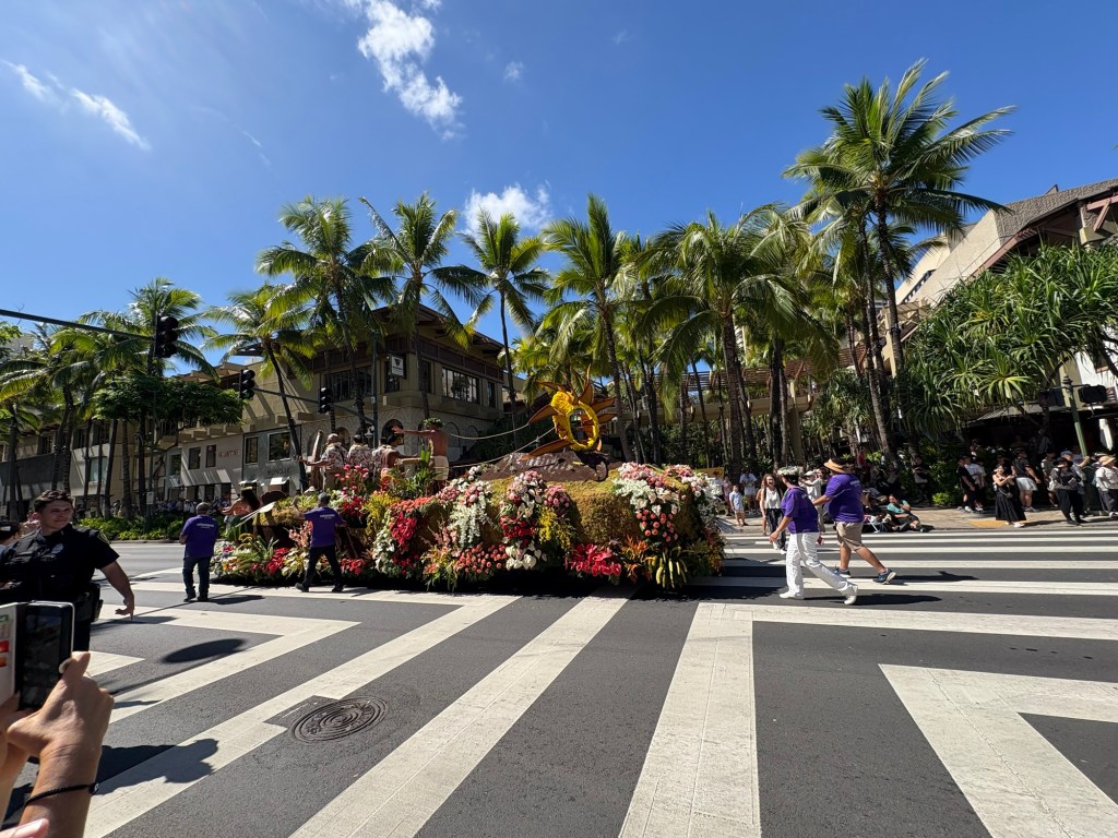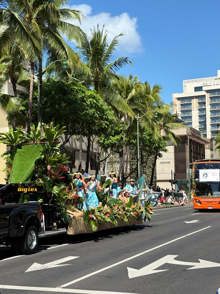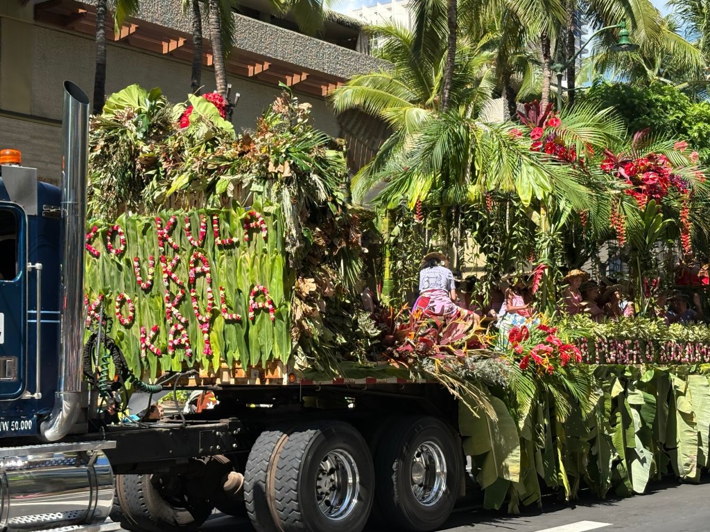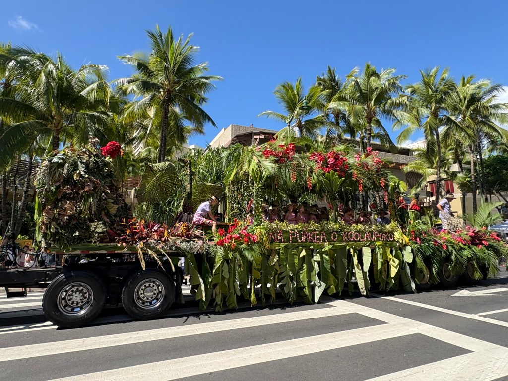 We were lucky enough to catch the final day of Hawaii’s Aloha Festival, an annual event (which started as “Aloha Week” in 1946!) where Hawaiians from all the islands in the state come together and celebrate their culture and heritage. The event culminates in a big floral float parade, with special guests including local politicians, then selected “Royal court”, marching bands, and more. I loved that all of the islands were represented in the parade. It was great to catch this in person! Here are some photos from this fun event: