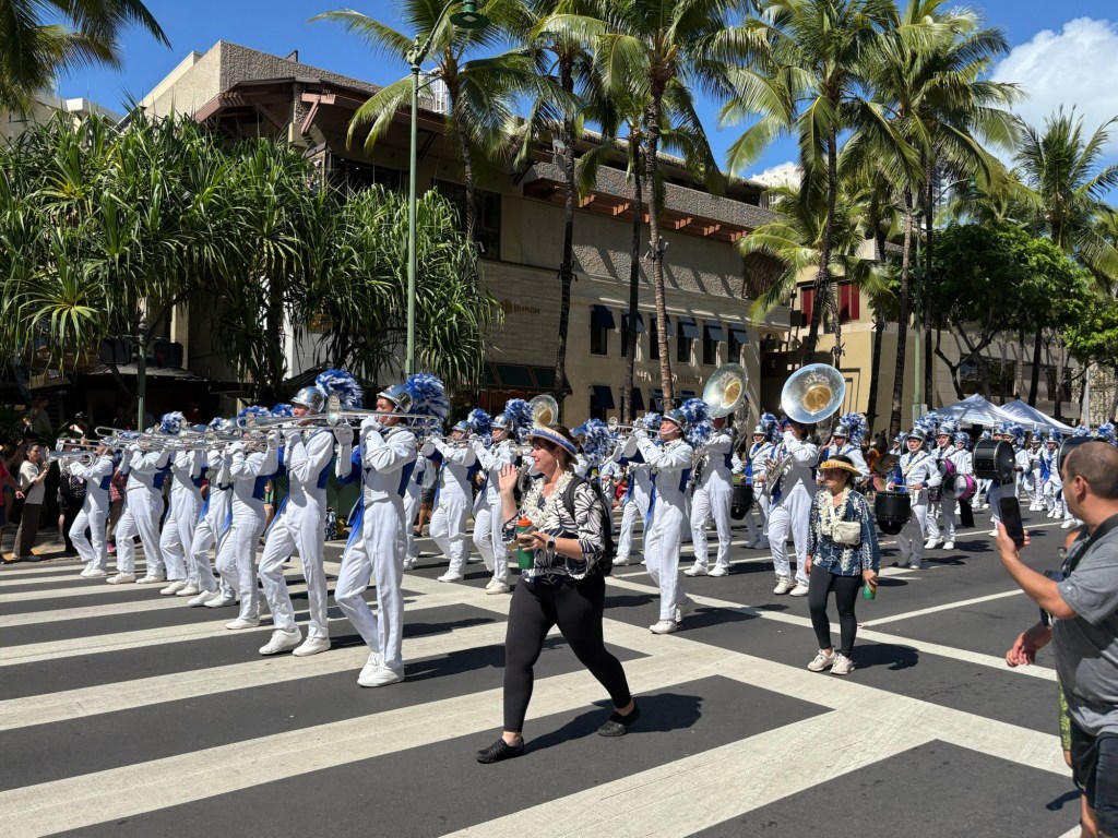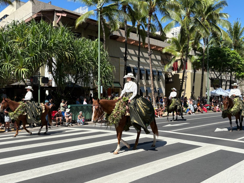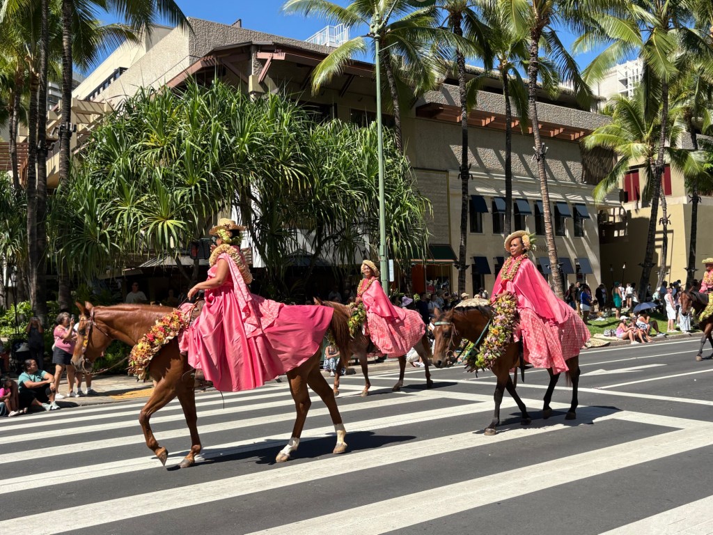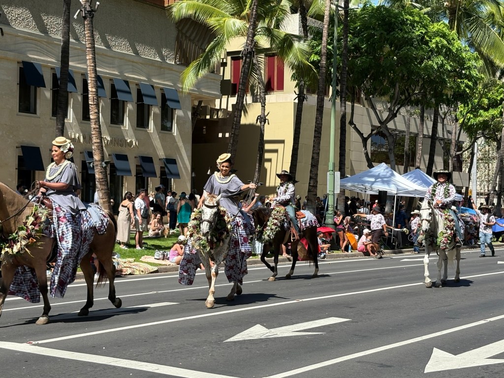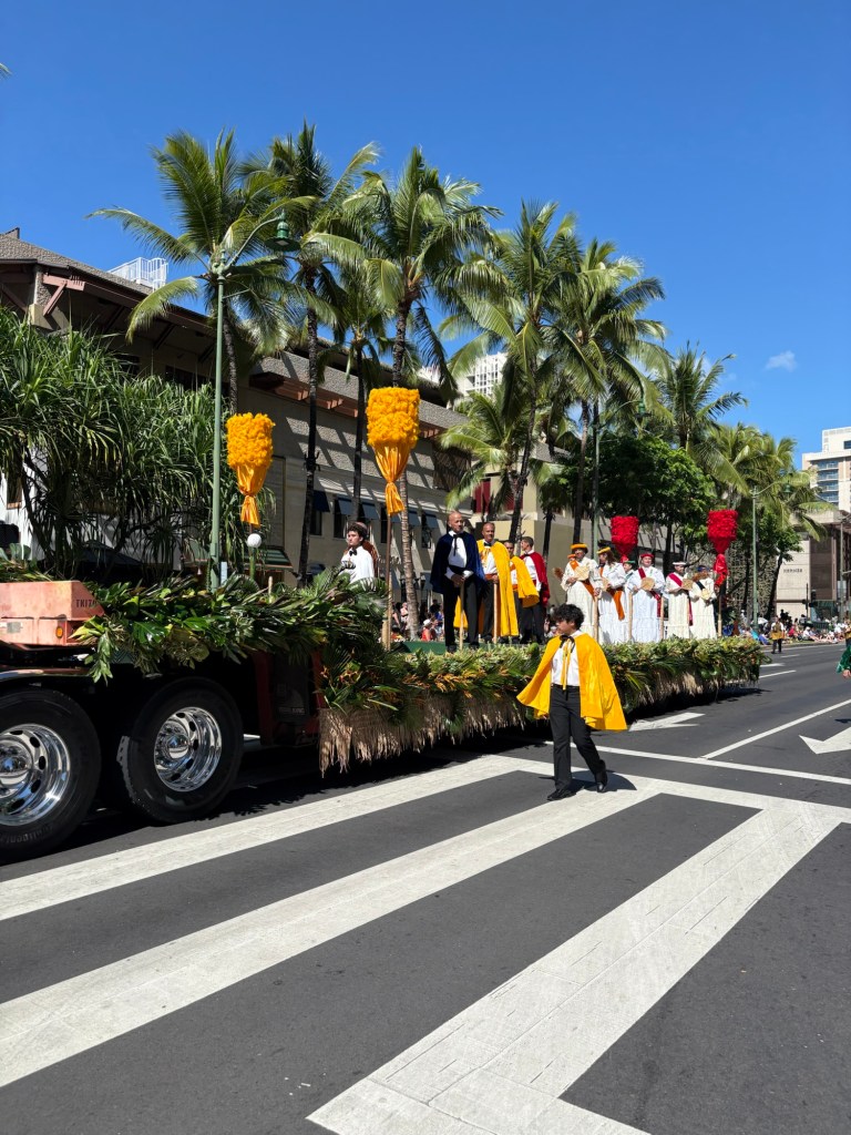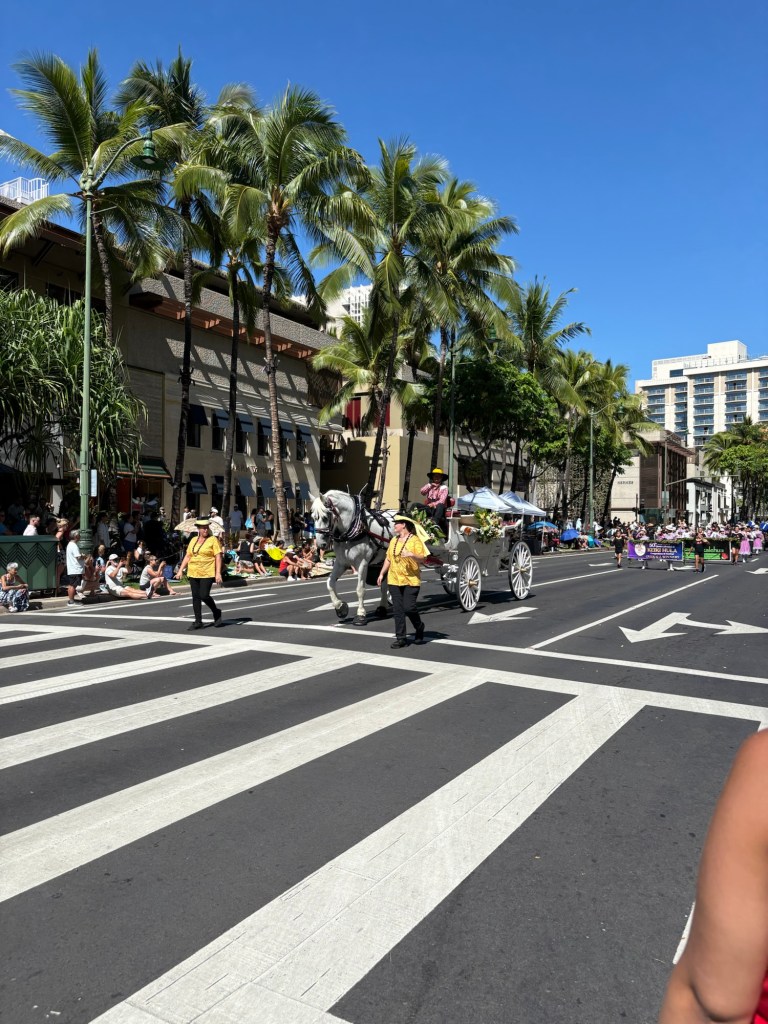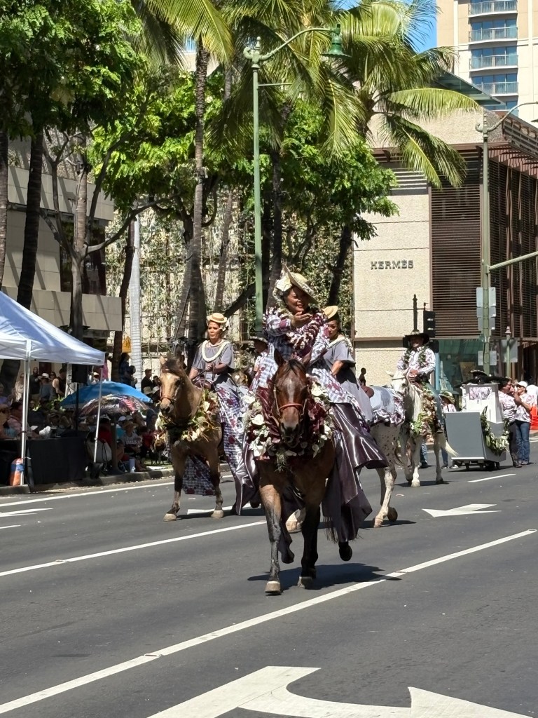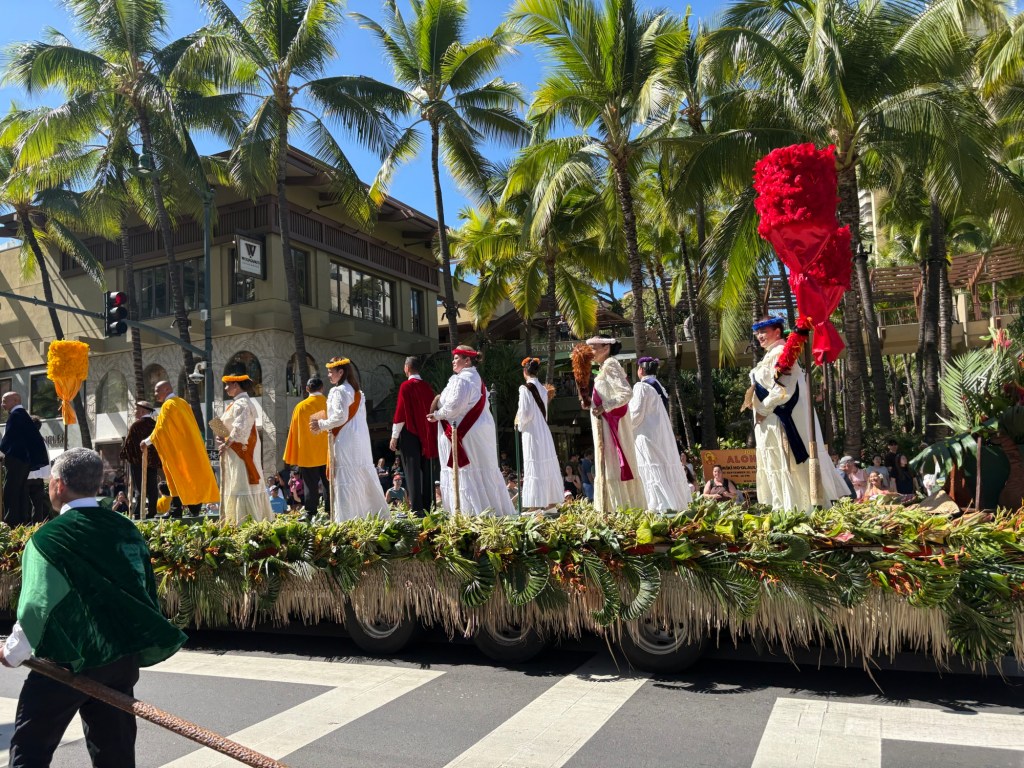 We were lucky enough to catch the final day of Hawaii’s Aloha Festival, an annual event (which started as “Aloha Week” in 1946!) where Hawaiians from all the islands in the state come together and celebrate their culture and heritage. The event culminates in a big floral float parade, with special guests including local politicians, then selected “Royal court”, marching bands, and more. I loved that all of the islands were represented in the parade. It was great to catch this in person! Here are some photos from this fun event:
