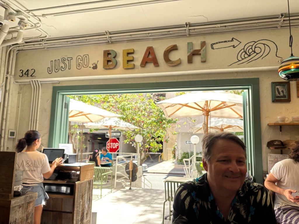 After the parade we had brunch at this cute little Heavenly Island Cafe, where Rob had an eggs Benedict that had lilikoi butter in the hollidaise sauce that was soooo good, and I had a yummy açaí bowl.