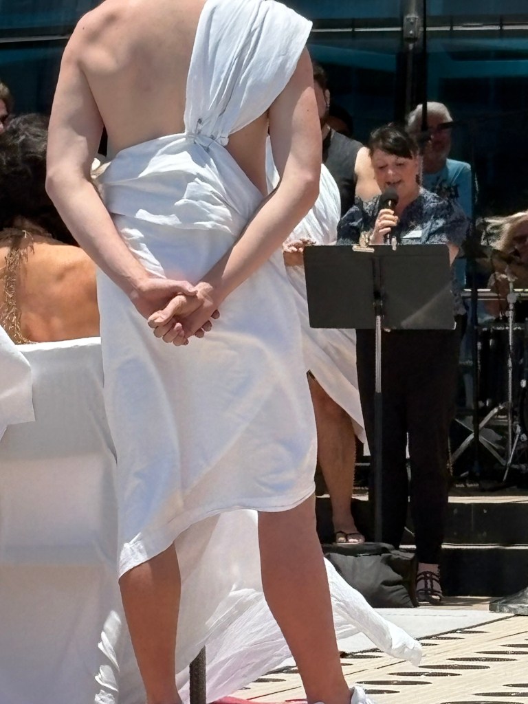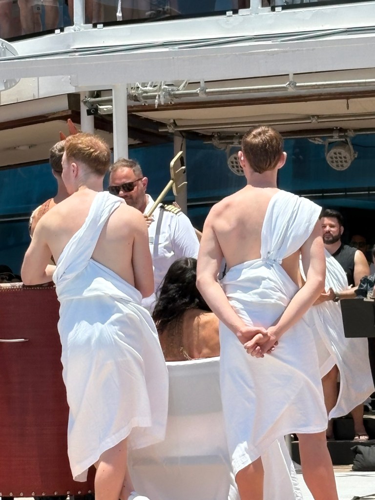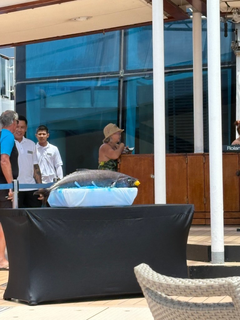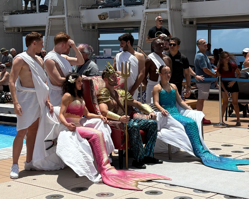 Today our ship crossed the equator. According to our captain, if you have never crossed the equator by sea, you are a pollywog, but once you have done so, you become a shellback. The ship has a βmartime traditionβ of honoring King Neptune with a ceremony at sea, and they brought out βKing Neptuneβs Courtβ to bless our journey and find us worthy of safe passage. Then the newly appointed shellbacks were invited to ceremonially βkiss the fishβ. It was so cute!