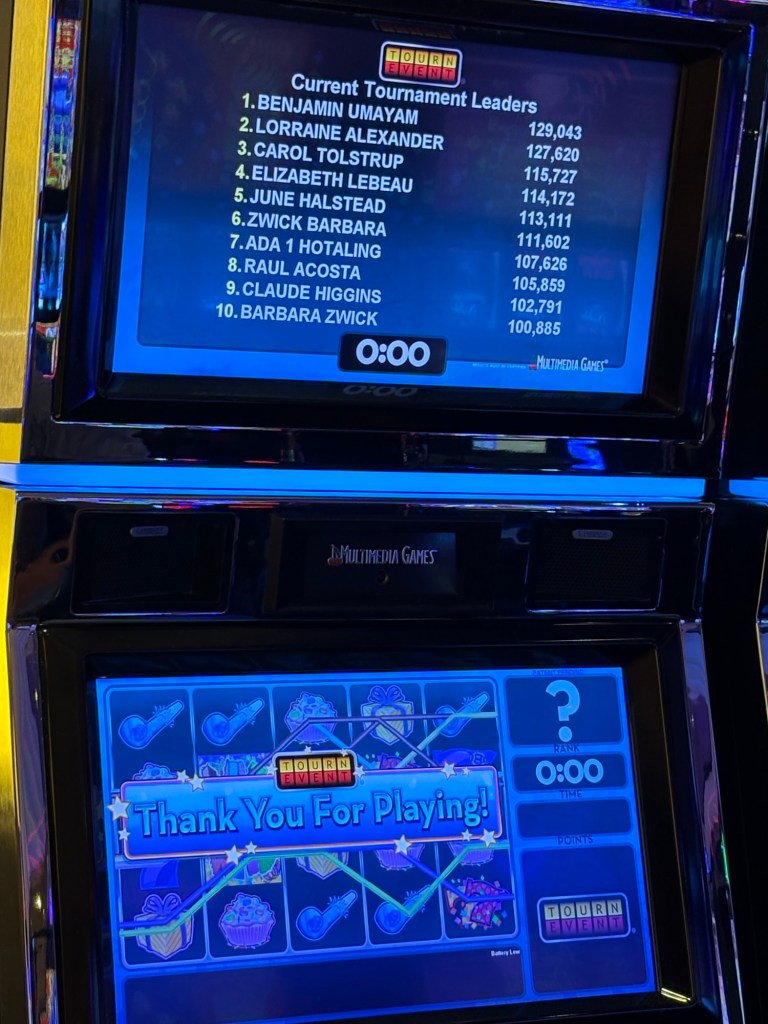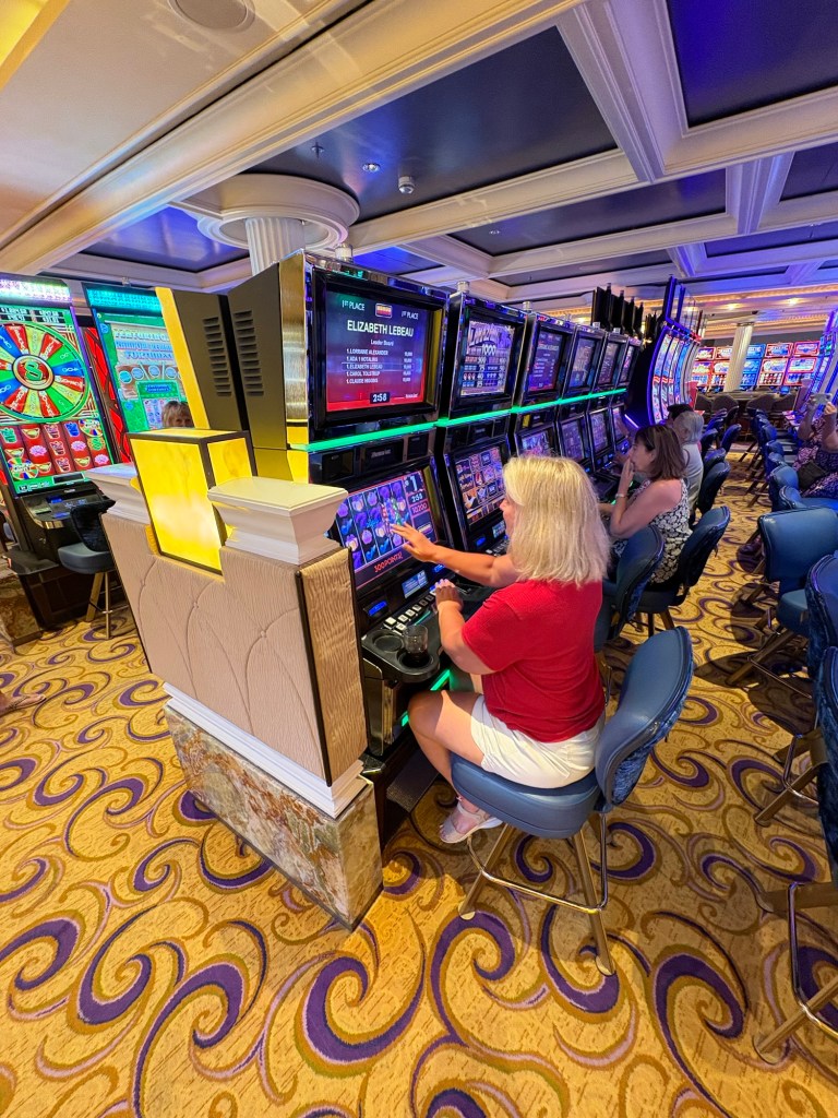 Next up was a slot tournament in the casino! I have always wanted to try one on previous cruises or in Vegas, so I finally decided to give it a try. It’s silly, really… basically you and a group of others sit at slot machines that are pre-set for the tournament and when the timer starts, you press the play button on your machine as fast as you can and whoever scores the most points/wins on their machine in the set time period gets a prize. There is an entry fee to play, but for this one the winner got $500. So mostly, this is a no skill, pure luck of the machines situation, but it was fun. I made it to the final round (but didn’t win), and I learned it is possible to get an arm ache from pressing slot machine buttons continuously for three-minute stretches. 😂 Rob was my best (and only) very loud cheerleader.