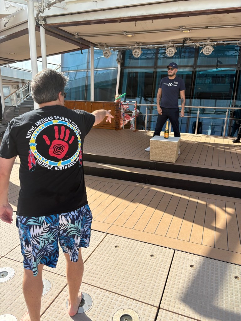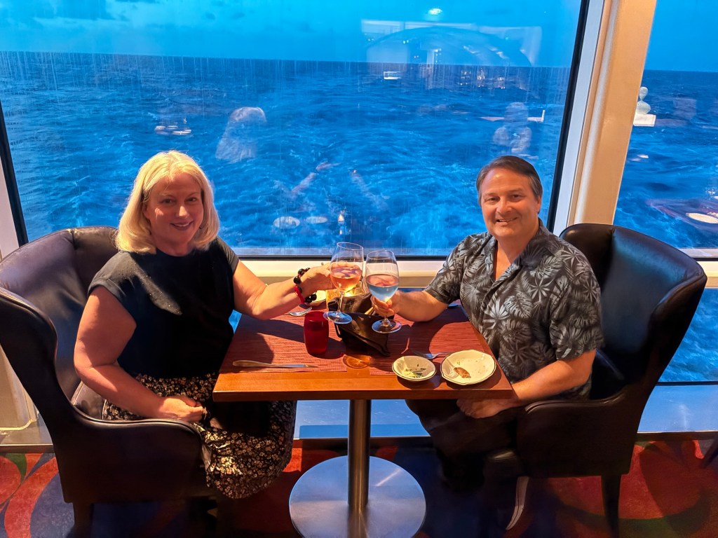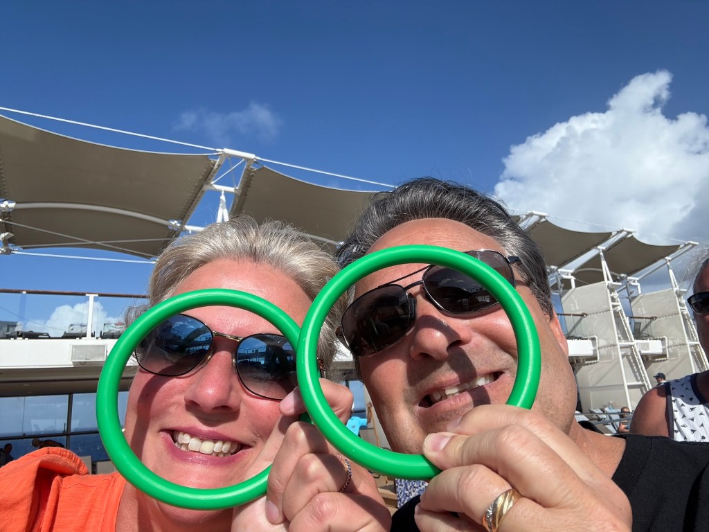 After the tournament we spent the rest of the day reading, snacking (might need a new wardrobe when we hit Australia 😂), watching the movie F1 with Brad Pitt in the theater onboard, and going to another “adult” game show called “Majority Rules.” This show had ship staff asking the whole audience to form teams and write down their answers to some (risqué) questions, and then whatever answer was given the most scored a point for each team that picked it. It was very funny!