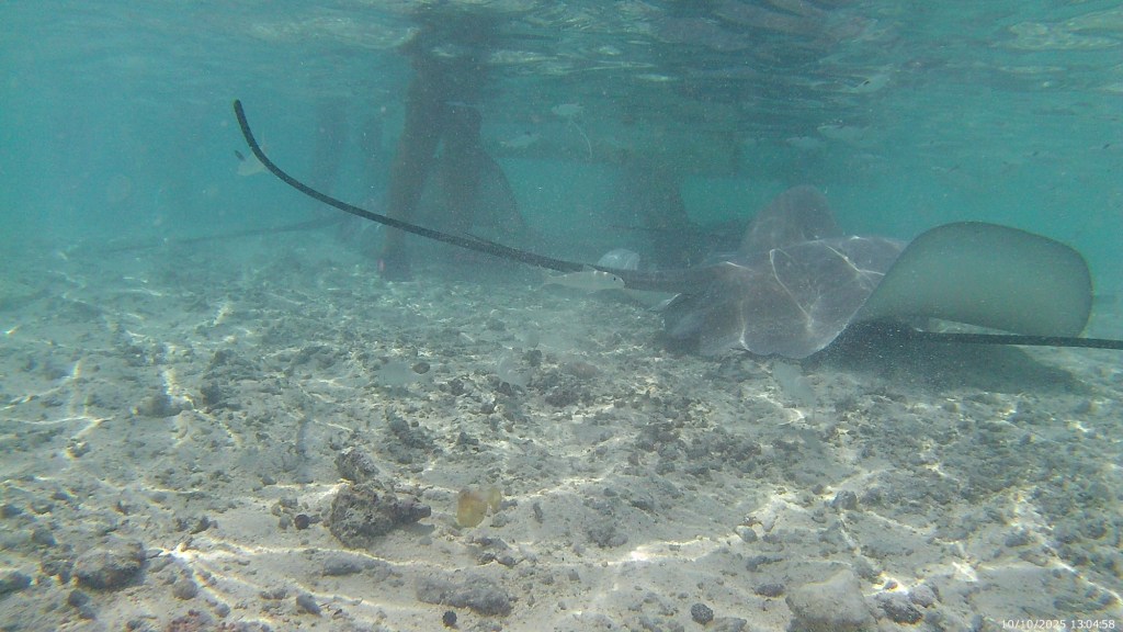 It was one of the coolest days, among MANY cool days, we’ve had lately. I am normally a little irrationally scared of sharks, so I was proud of myself that I swam around with them unbothered. I was also surprised to realize that despite their barbed tails, I had no fear of these rays, while the harmless Manta rays we swam with on the Big Island in Kona absolutely terrified me! It must be a size thing.