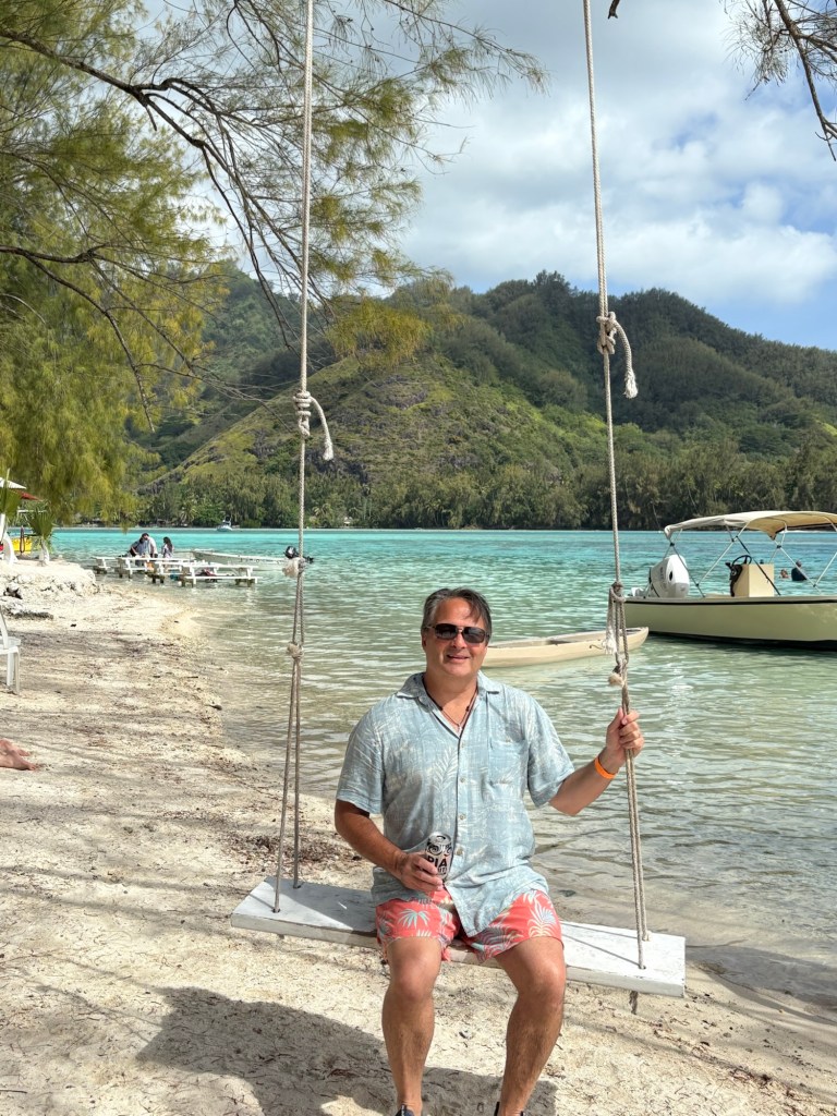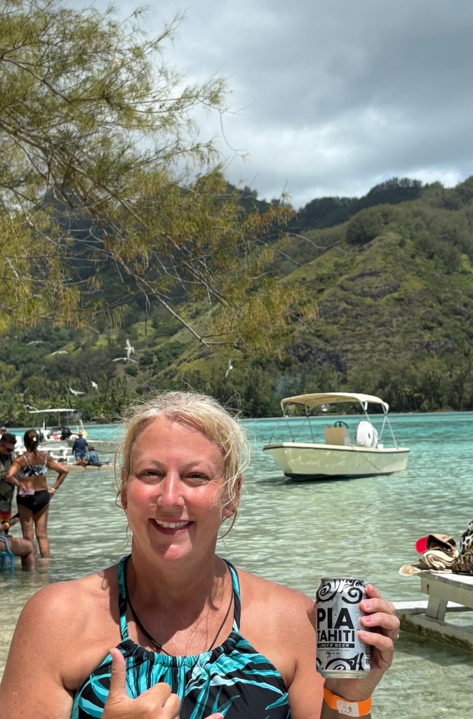 The little beach we were on had a bar on it (aka a table where a local had a cooler of drinks) so we tried another local beer, Pia Tahiti, that we liked. They also had a bbq grill going that we didn’t try, as our ship has kept us (a little TOO) well-fed.