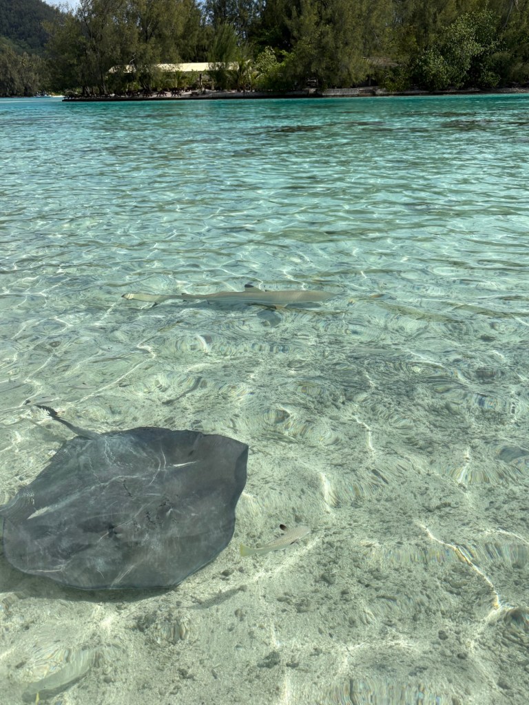 We selected an excursion that took us to the Moto Tiahura sandbar on a private island across from the mainland, that is known for being a stingray and blacktip shark nursery area. We enjoyed a gorgeous ride from the port to our snorkel island.