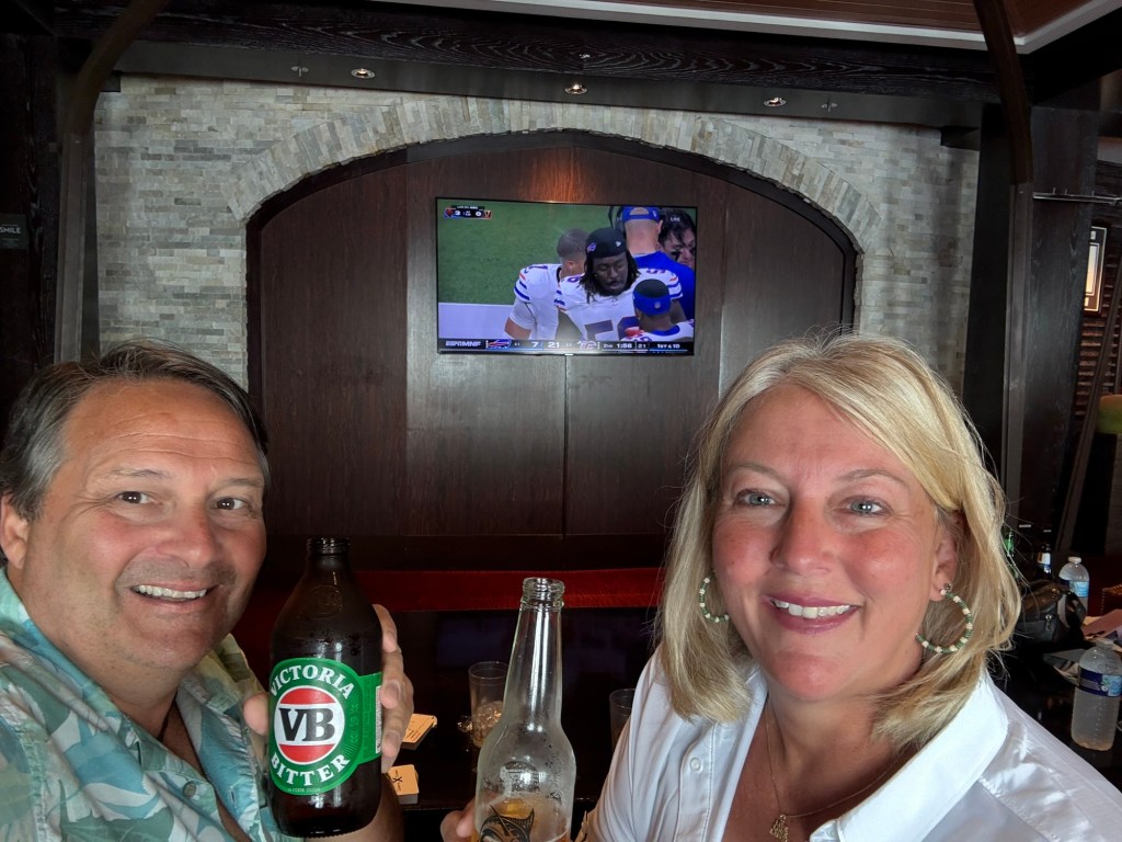 So with Monday the 13th being a wash, we woke up Tuesday morning and did what we Americans do on Tuesday morning… watch football! 😂 Technically it was “Monday Night Football”, but not where we are!