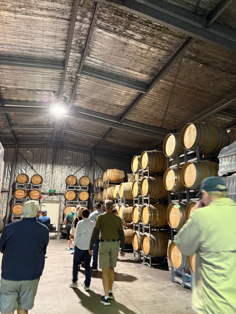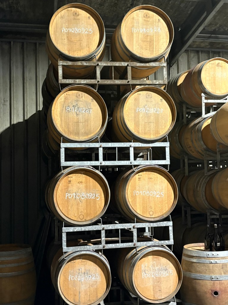 Tony walked us through the grape vines, the giant barrels where they store the wines, and through all the steps of their wine-making process. Despite having been on previous winery tours, we learned new things! He told great stories, and made us feel very welcome before we sampled some of their wines.