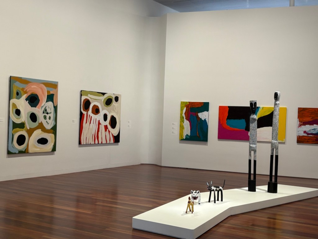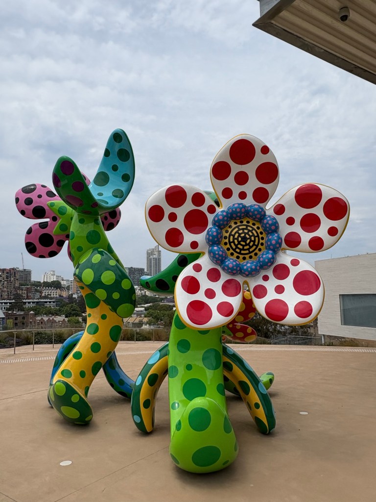 From the gardens, we walked on to the Art Gallery of New South Wales. This huge, two building gallery is completely free to the public (except for the special exhibits), and was a really lovely place. It has great views of all the downtown buildings around it, and it has indigenous art, masters, Australian classic and contemporary painters, a huge childrenβs playground, interactive areas, and so much more. We saw some wild and wonderful stuff, and only finished one of the two buildings. Weβll save the other for our return to Sydney in November!