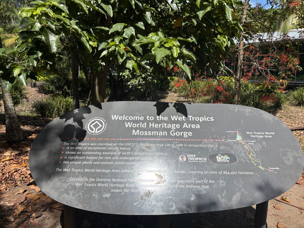 The Kuku Yalanji people are the Indigenous inhabitants of Mossman Gorge and have a history dating back 50,000 years to the earliest human occupation of Australia. They still own the land here and allow visitors onto their land/the rainforest as a part of a regulated tourism program that operates via a main road in to a visitor center. Once you arrive at the visitor center (and pay a fee) you board a shuttle bus that takes you into the rainforest walkway area.