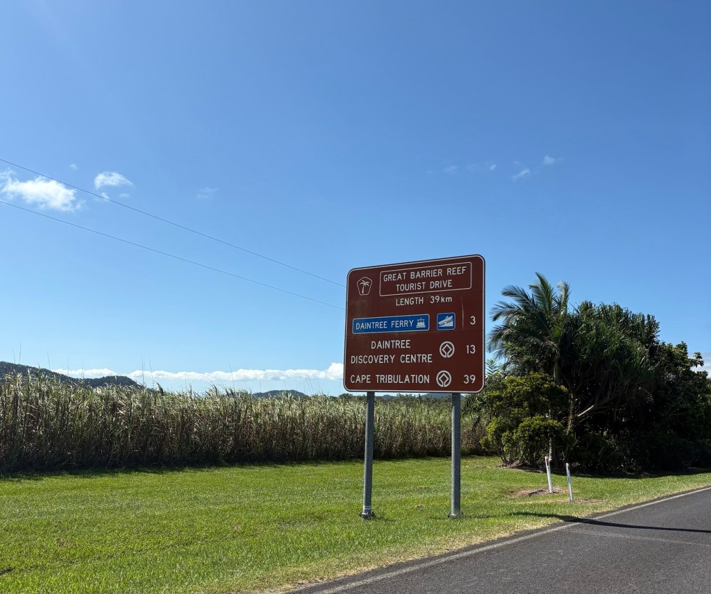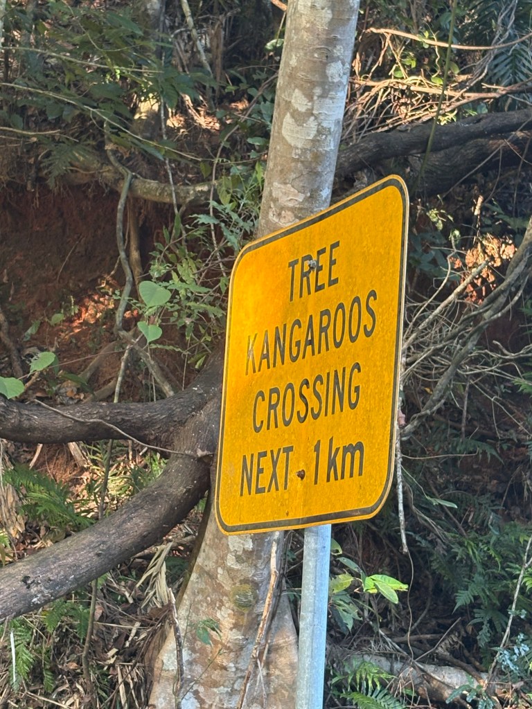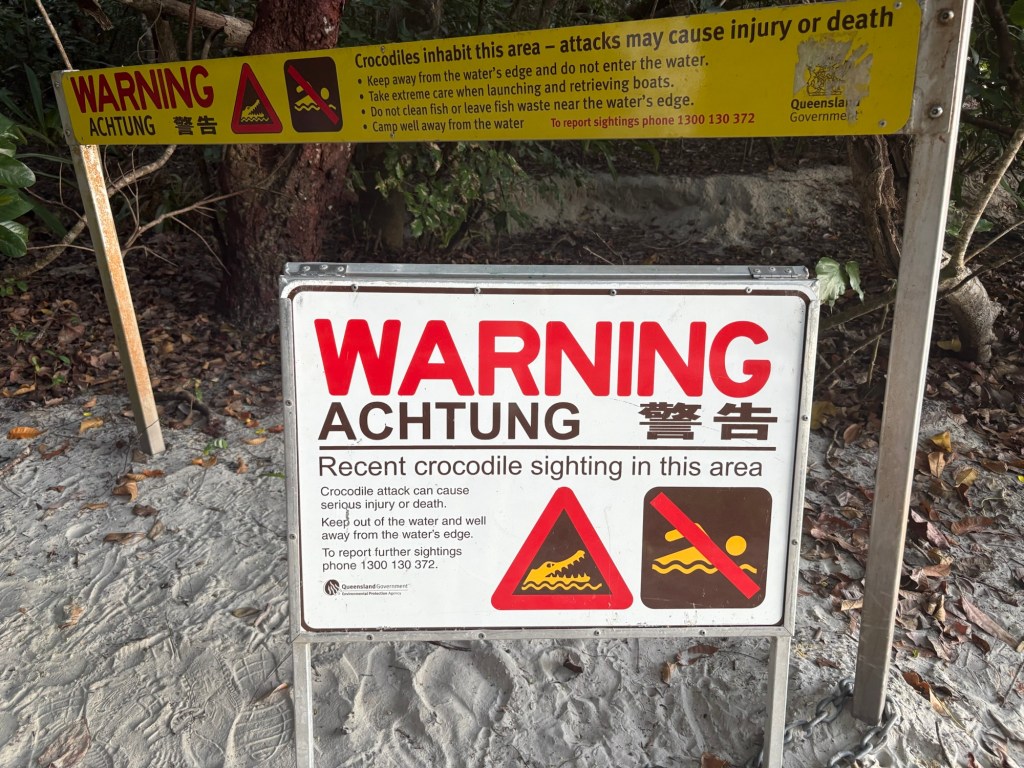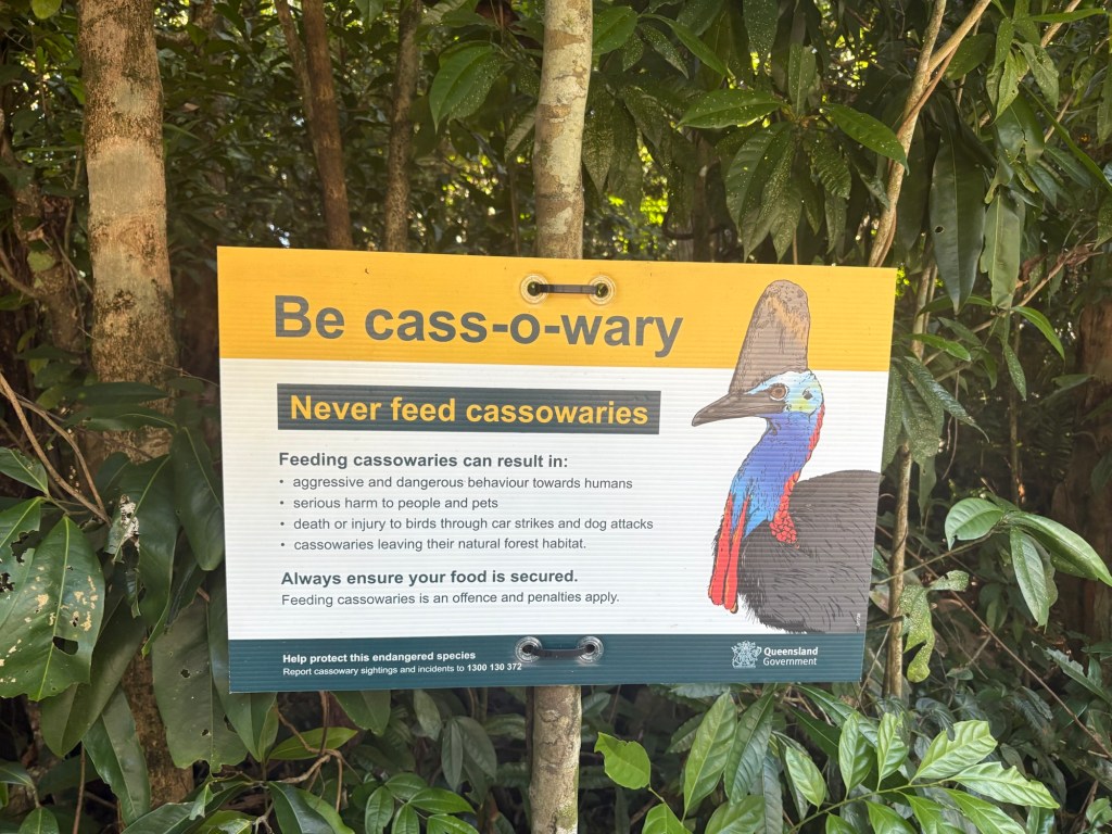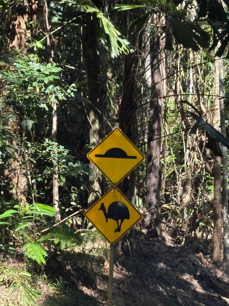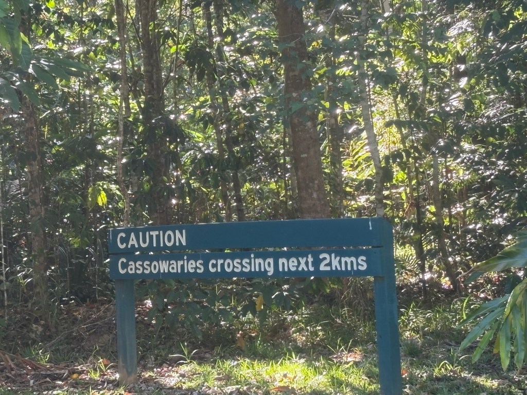 From the other side of the ferry banks, we entered the Cape Tribulation part of the Daintree. We wound our way around the mountain roads admiring the rainforest on our left and the ocean on our right. We also saw some some interesting signs (below).