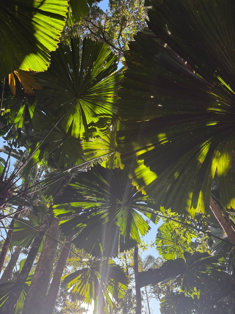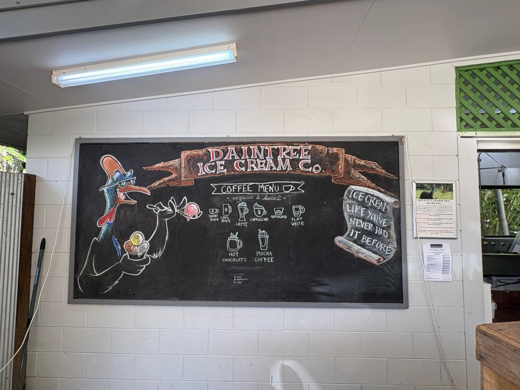 Our first boardwalk hike in this area was closed, so we changed plans and went to eat ice cream instead 😂😂, as we fitness types do. The Daintree Ice Cream Company is known for their exotic flavors. They have groves and a farm, and grow their own fruits that they use to make their organic ice cream. We got a mix of funky flavors in their “sampler”: passion fruit, coconut, waffle seed, and both yellow and black sapote. My favorite was the yellow sapote, and Rob’s was the black sapote, which tasted like chocolate. Very yummy!