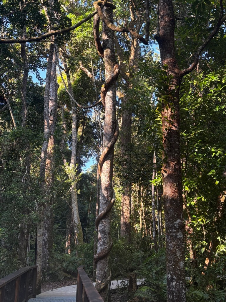 From here we did a few more boardwalk hikes through the rainforest to walk off some of that ice cream 😂. Our first stop was Madja boardwalk for a mile walk there. It was very peaceful and beautiful walking among the giant trees and listening to the bird calls.