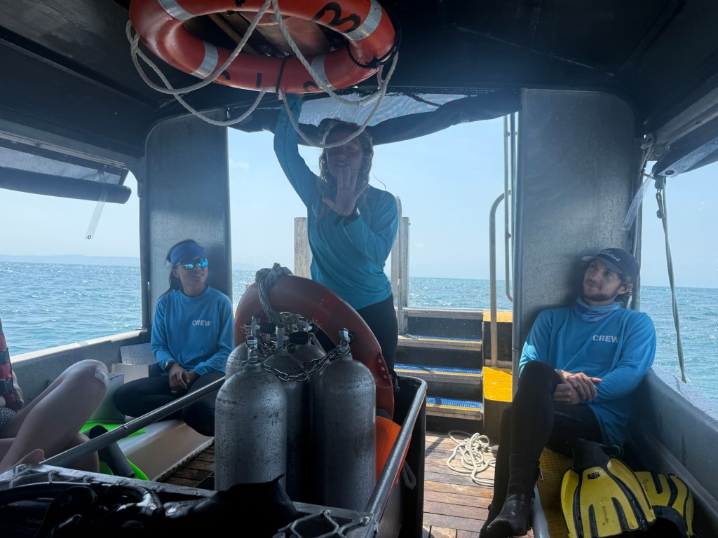 Our snorkel boat has a permit from the GBR conservation people to be allowed to feed the fish off the back of our boat every afternoon, so we got to watch this spectacle today. They have these black giant trevally fish that are super speedy and will leap out of the water to get food. It was so cool!