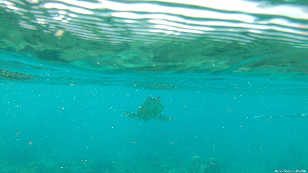 We loved snorkeling with the turtles, and saw another large black tip reef shark today (about 6 foot), some incredible, tall blue coral, more giant clams, cuttlefish, and a really cool blue sea star. Here are a few of our sights from our underwater camera: