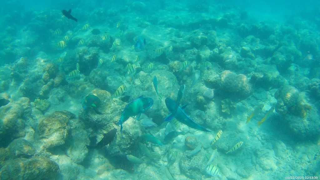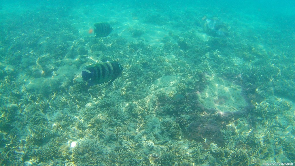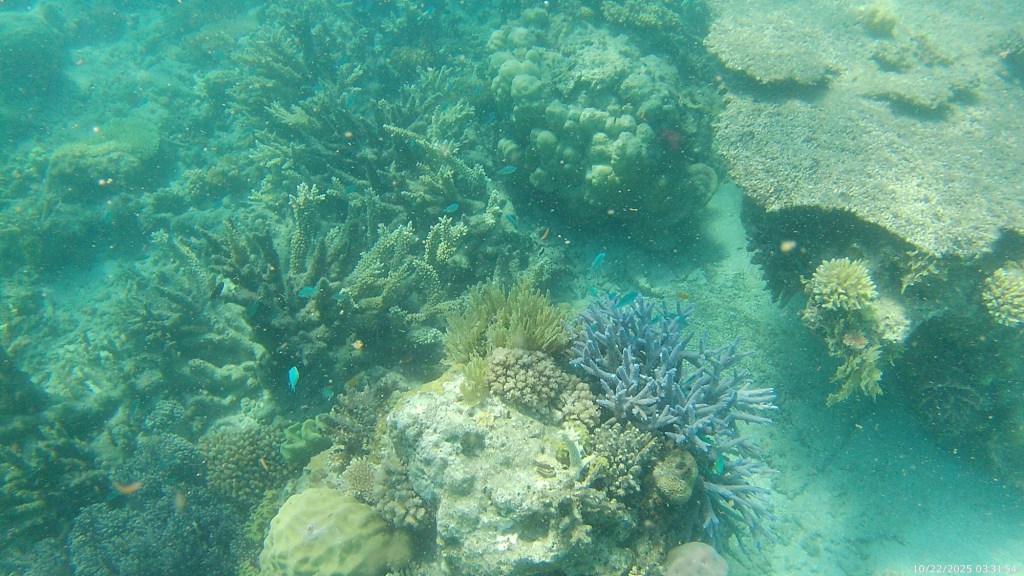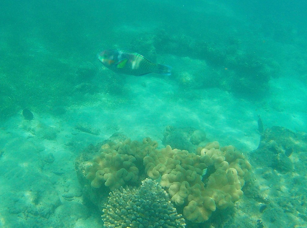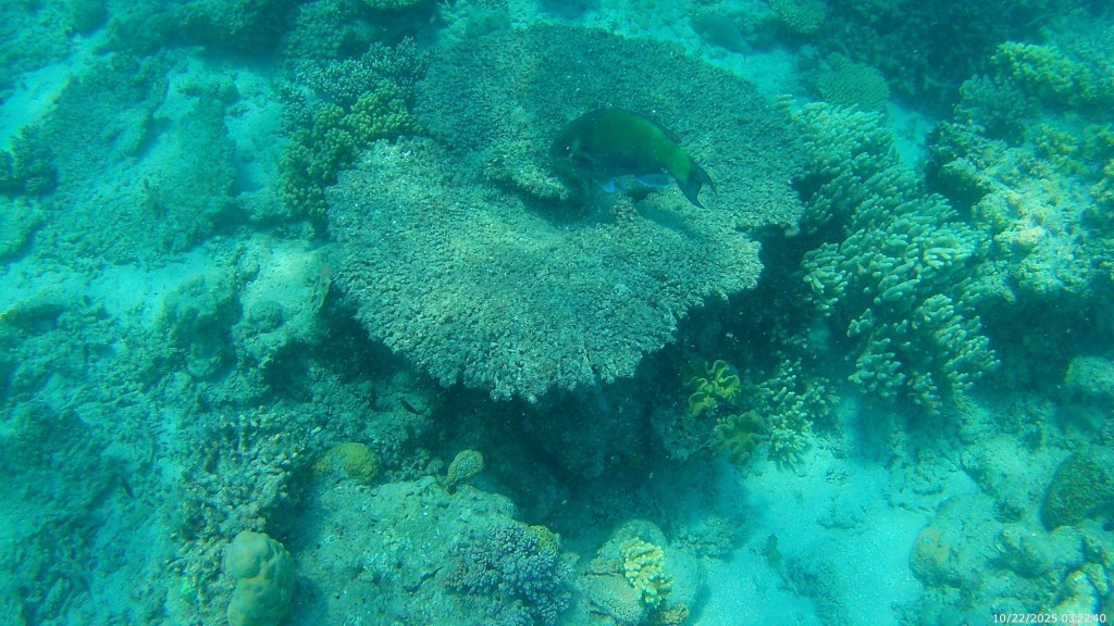 We rented snorkel equipment and did a few snorkel swims right off the beach at Green Island that were very nice. In the afternoon, we had an excursion from the dock that took us out a little deeper in the barrier reef, where we got some great views of really large size reef dwellers. Over the past few weeks of travel, we’ve seen many similar things (reef fish, coral, turtles, etc.) to what we saw here when snorkeling, but on the GBR, they were much bigger, likely given the age of the reef.