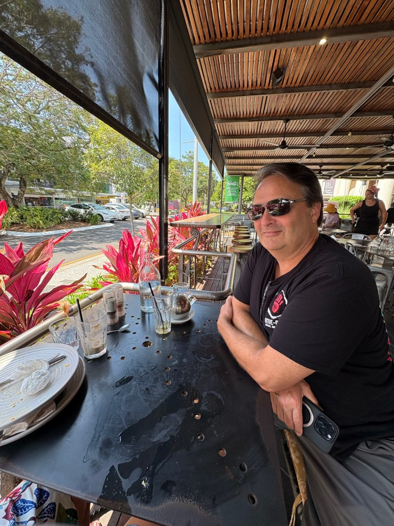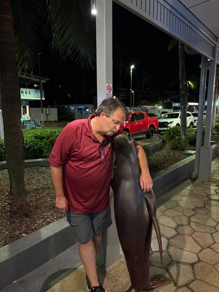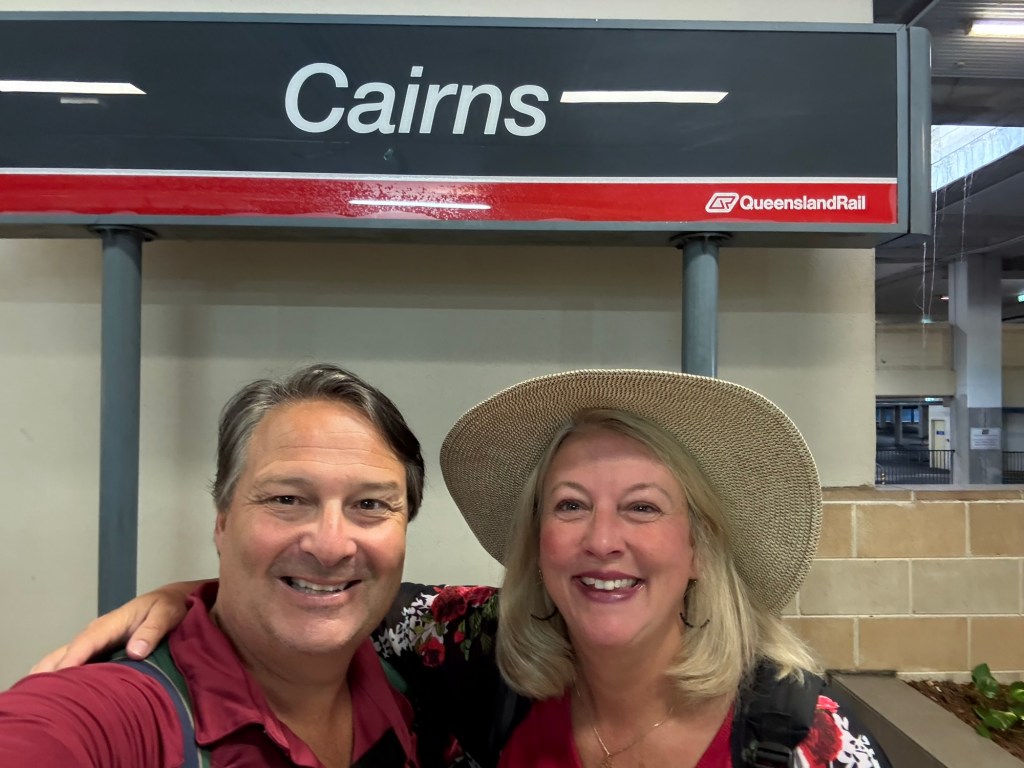 We spent yesterday laundering and re-packing, once again attempting the ridiculous puzzle that is fitting everything in our suitcase. Rob’s gotten really good at stomping and hammering down our compression bags to get them zipped. 😂 We also had a nice brunch out and walked around the Cairns Art Gallery, which was very cool and free to the public! It focuses mostly on Australian First People art works, and we enjoyed seeing it. After the Gallery we stumbled across a giant hotel with a casino (didn’t know they had those here) and decided to go waste $20 while sitting in the air v gconditioning (which I have mentioned in previous posts is not as common here as I want it to be). I walked out $15 ahead, and Rob walked out $15 down, so in the end we balanced out and a good time was had by all. Some of the slot machines had a “Sea Doo” jet ski as the grand prize, so we had a good laugh imagining what we’d do with that particular prize if we won!