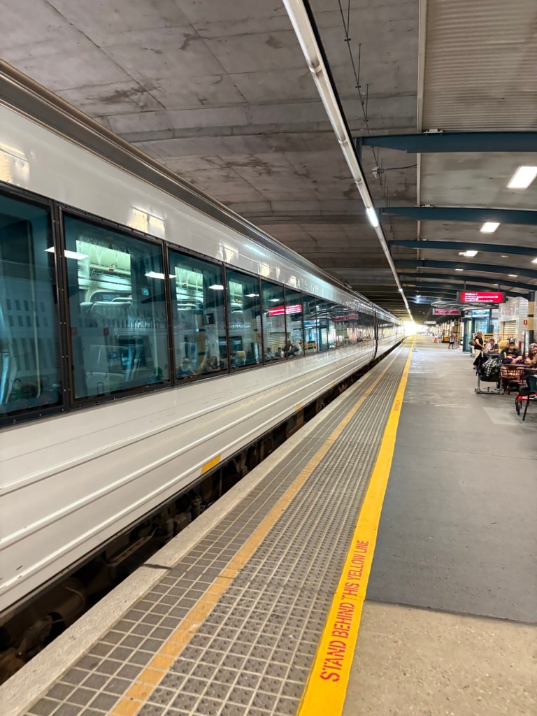 We left Cairns today at an ungodly hour to make the 11 hour train-and-bus rides down to our next stop, Airlie Beach. Airlie Beach lies in the southern part of the state of Queensland, and is the southern gateway city to the Great Barrier Reef (whereas in Cairns we were in the north). The ride on Queensland Rail was long but nice.