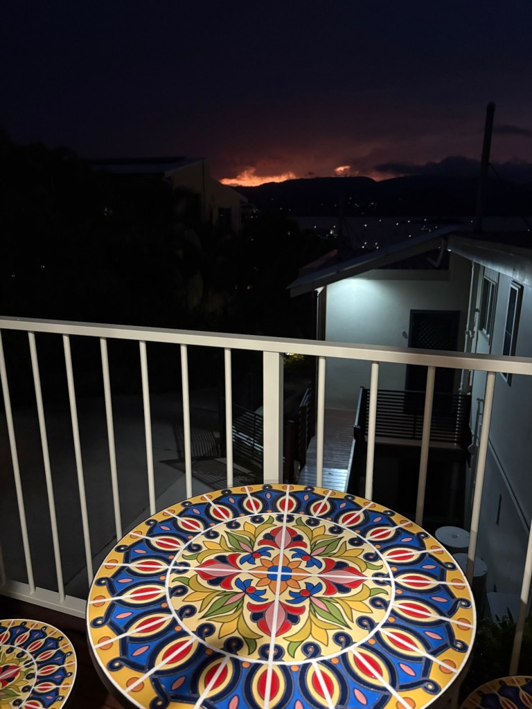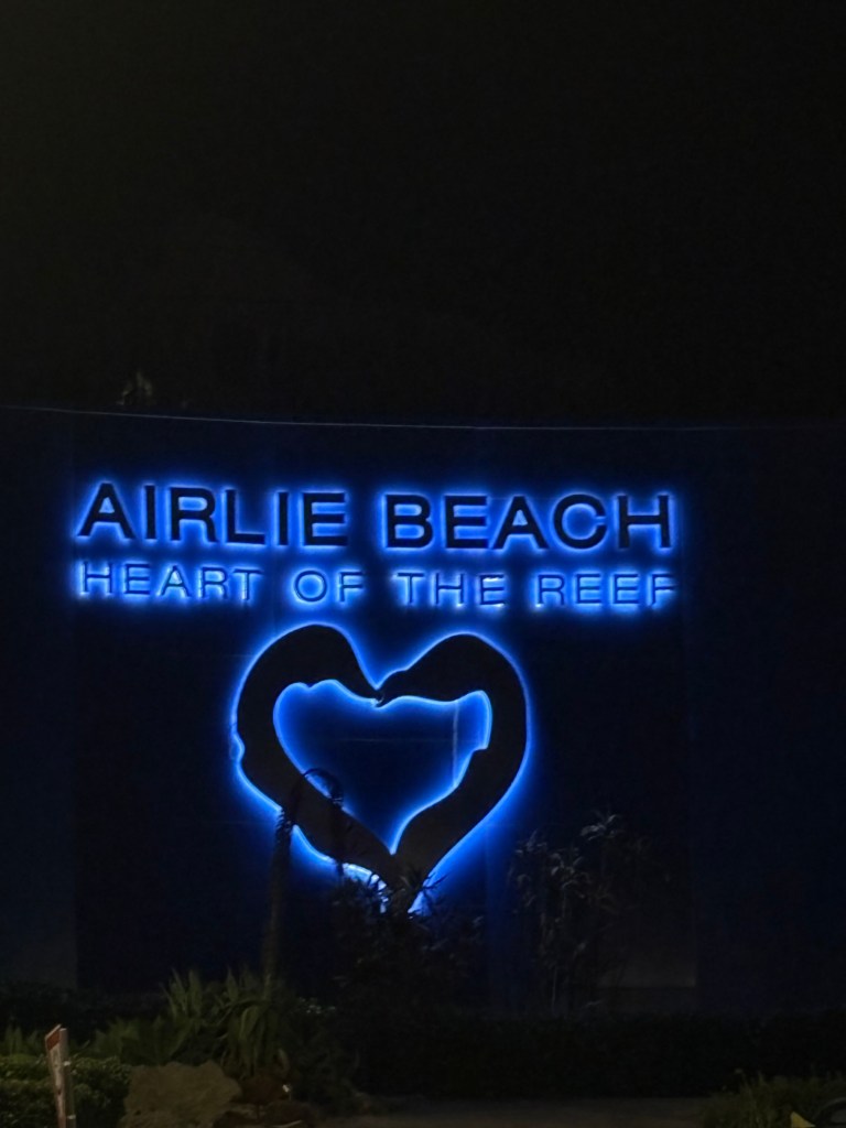 We transferred from train to bus in Prosperine for the final leg of our journey to Airlie, and our very kind bus driver dropped us right at our air bnb, up on a hill overlooking the town. We arrived just after sunset, and can already tell we will have some amazing sunset views the next two nights.