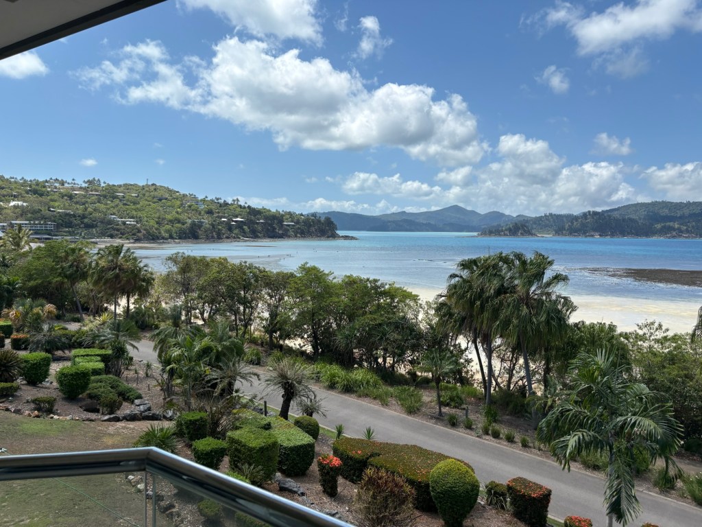 Rob and I packed up and left our cute little Airlie Beach condo this morning and headed to the ferry station, where we caught our ferry to nearby Hamilton Island (HI). Hamilton Island sits in the Great Barrier Reef, and is a big travel spot for many Aussies, as well as being a recommendation from multiple friends back home. Immediately on arrival, we could see why everyone loves it. It is 2.9 square miles of gorgeous.