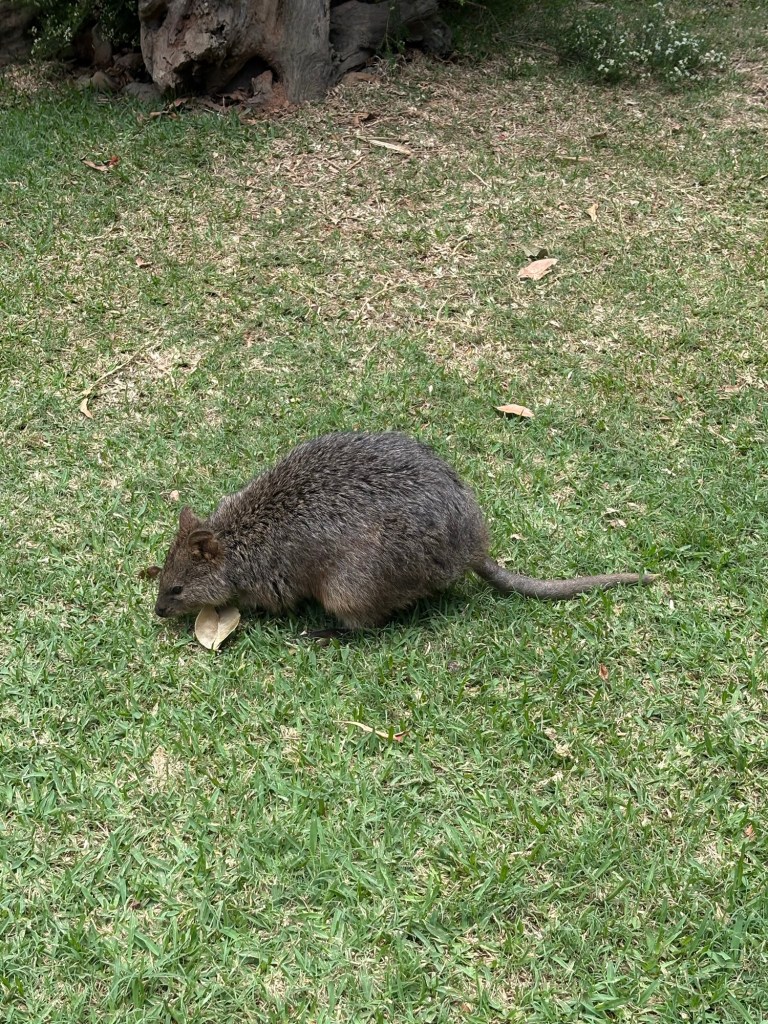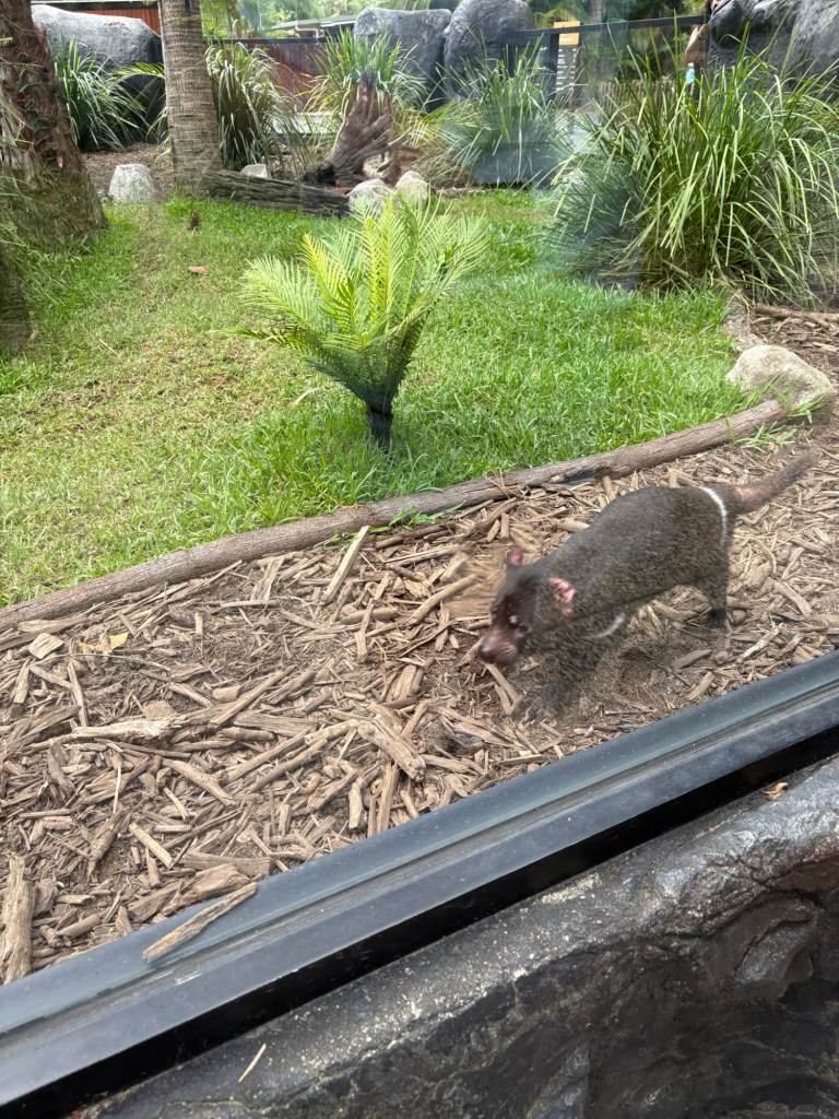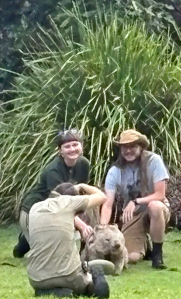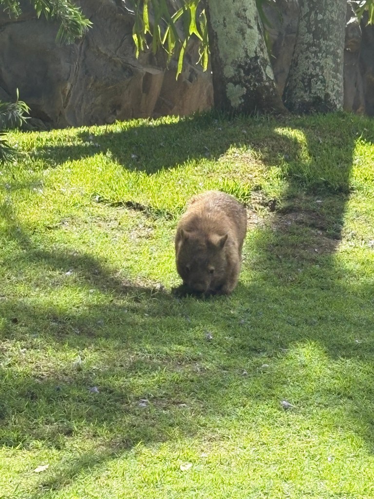 We arrived just in time for Jenna and Connor’s Wombat Encounter. With a small group, the wombat keeper took them out to a field, educated them about wombats, and gave each person in the group a chance to pet and take pictures with the wombat. Jenna and Connor learned that wombats have a rear facing pouch, have a 35 day gestation period, and that predators leave them alone because they have powerful butts that they smush things with. 😂 They call them “battle butts”!