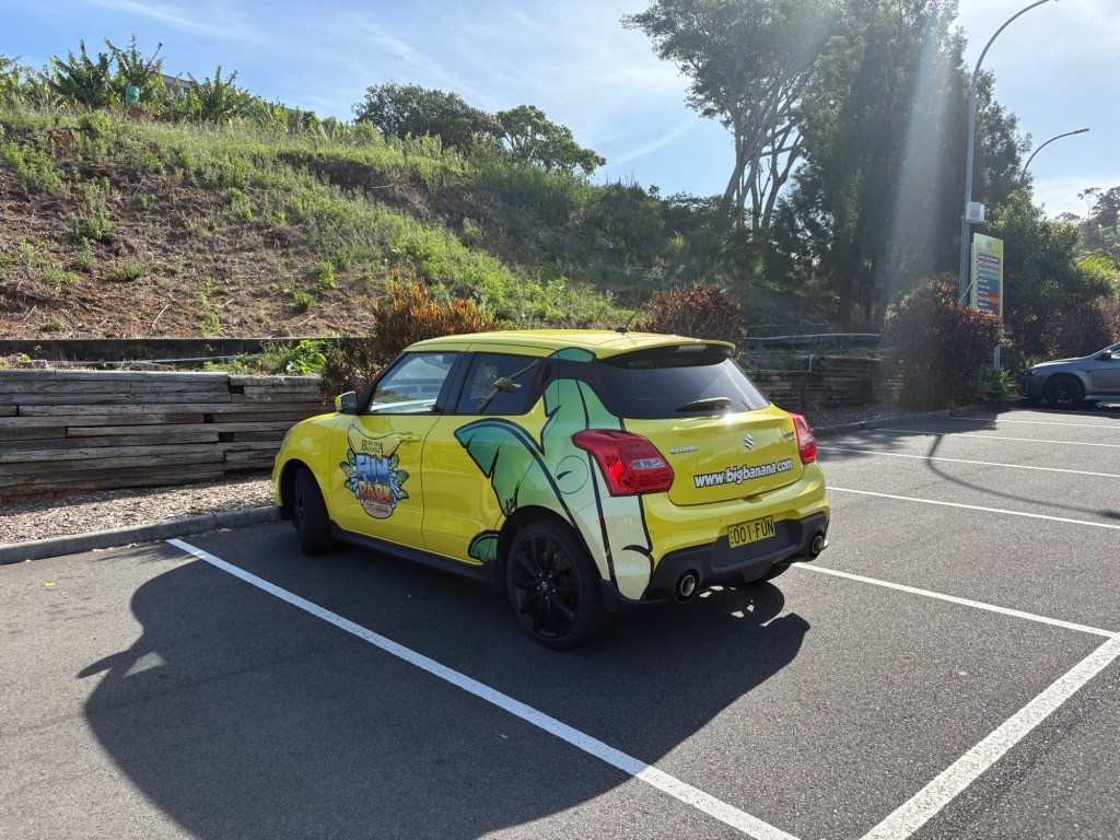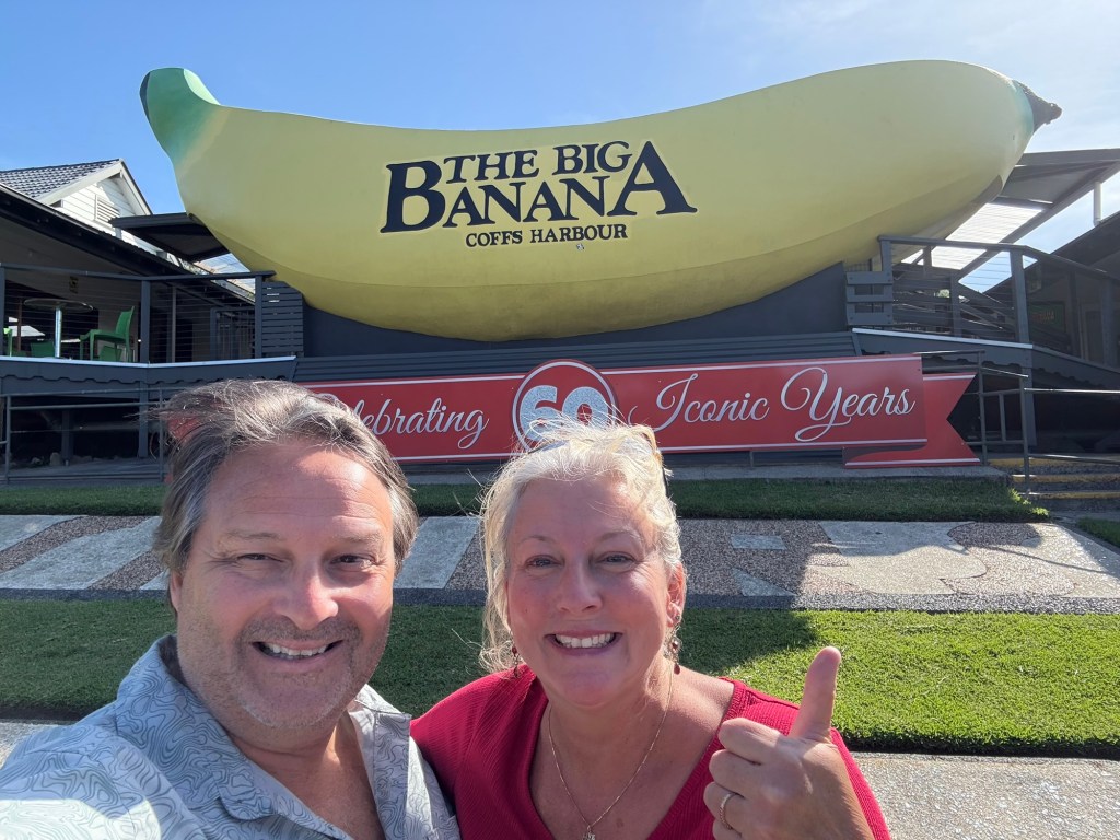 Our last big stop before our next camper park (“caravan park”) was the cute coastal town of Coff’s Harbour. There are a lot of cool beaches and wildlife here, with about 80,000 people (so lots of shops and restaurants, too). The city has an iconic theme park built in the 1960s called “The Big Banana.” It’s a mix of activities like carnival games, arcade games, rides, mini golf, and some water activities- 100% my kind of cheese. Of course we stopped! It was the end of the day for the park, so we didn’t get to ride anything, but I’m still glad I got to see it. Australia has a list of iconic “big things”, and we made it to two of them today!