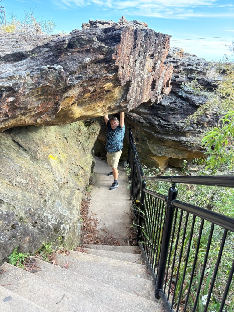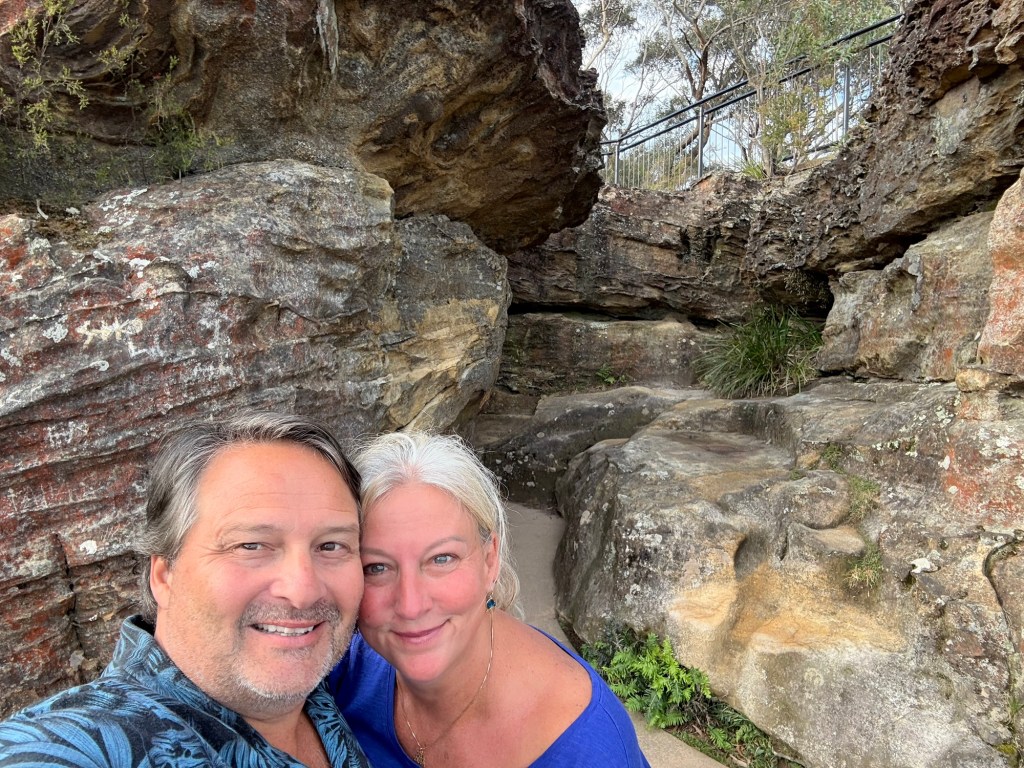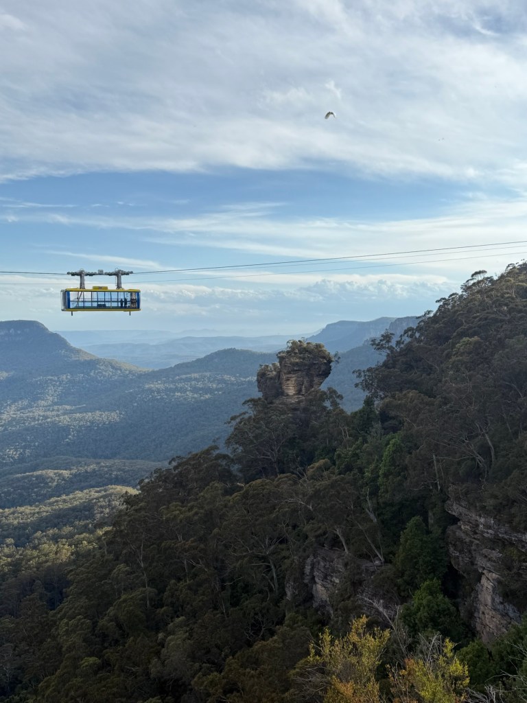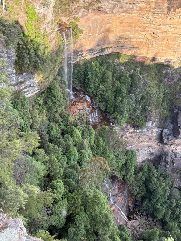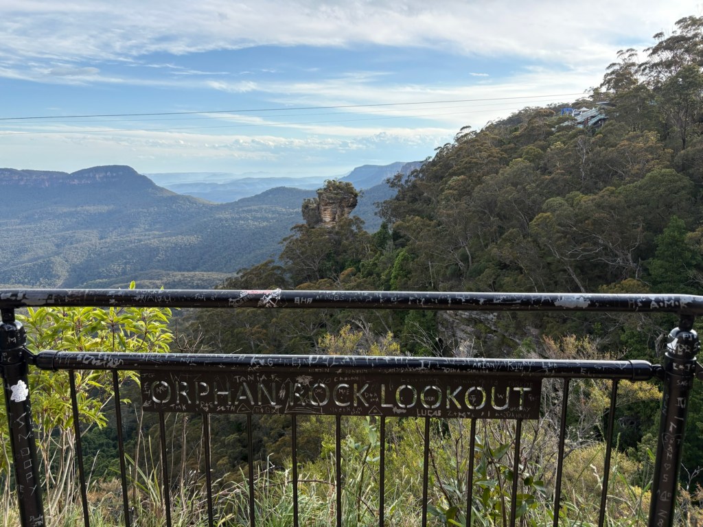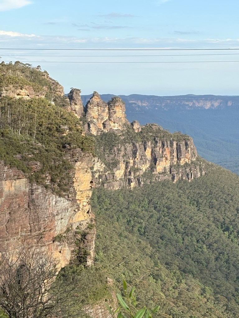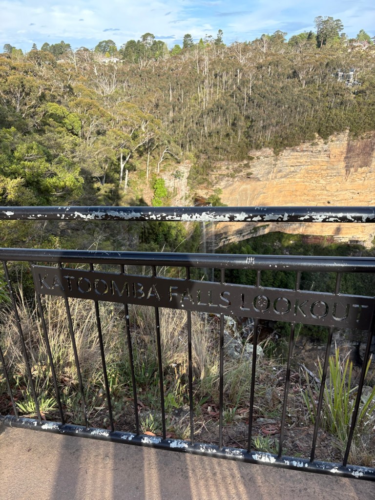 We arrived tonight at our campsite in the Blue Mountains, surprised to find that the area where our campgrounds is located (Katoomba Falls) is actually a decent sized small town. So, while we are walking distance to beautiful mountain views and hiking paths, we are also walkable to shops and restaurants. Win win!! We are getting pretty good at setting up the camper stuff now. Each campground has been so different in terms of cleanliness, views, and amenities, but all have been fine overall and all have had bath houses and hot showers and community kitchen spaces (for those crazy people that like to cook!). The one we are at now also has laundry facilities, but I learned they only take coins, which I don’t have enough of. Most every place we’ve been since arriving in Australia has accepted credit card, so we have been using it for everything. Our bank gives a good exchange rate, too. Wet clothes and towels from yesterday’s rain may have to sit a bit… 😫