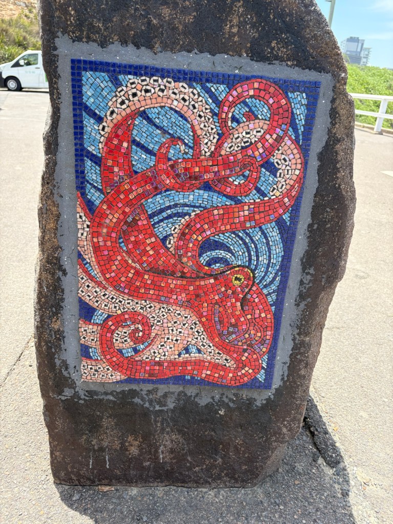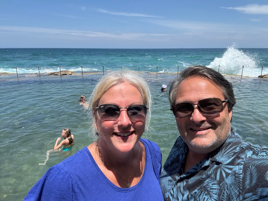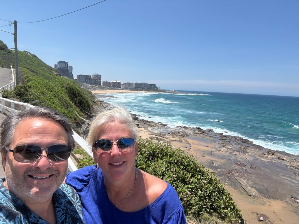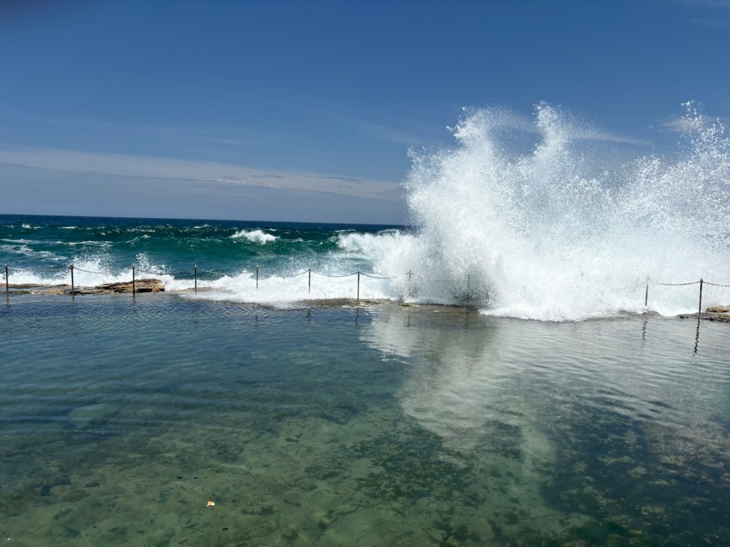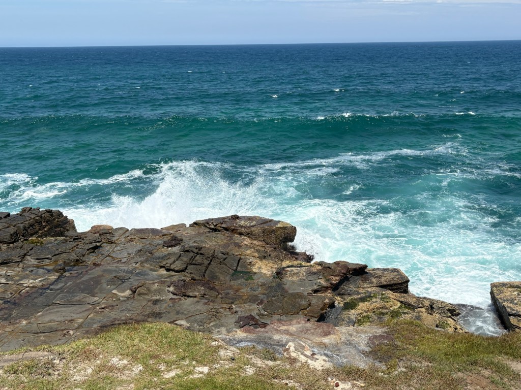 I have a new favorite sight/activity for this leg of the trip! The Bogey Hole is a hand-carved swimming hole in the rock cliffs of Newcastle created by convicts under the command of Major James Morisset, in 1819 for his personal use. The pool was originally referred to as the ‘Commandant’s Baths’. Basically this rock ledge sits right in the cliffs next to the ocean. And when the crashing waves come in, they spray up as they hit the rocks and keep the pool filled. They even carved out a little drain area into the rocks. Despite the sordid past, it’s pretty fascinating and a beautiful spot to watch waves crash and swim safely in sea water overlooking the ocean but not IN the ocean. I fell in love with this spot instantly and would put it on my “definitely want to go back” list.