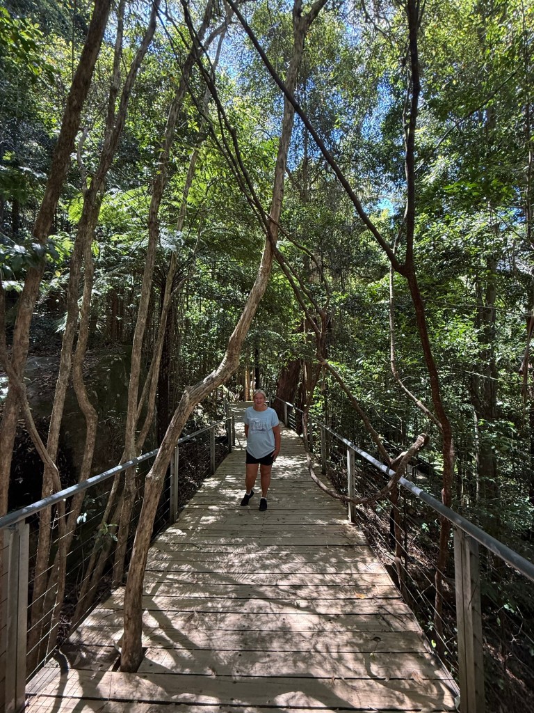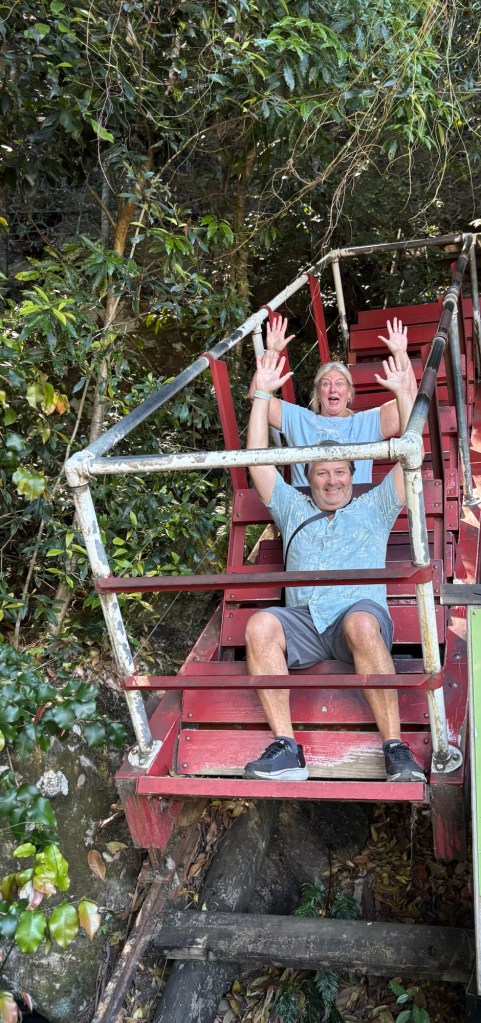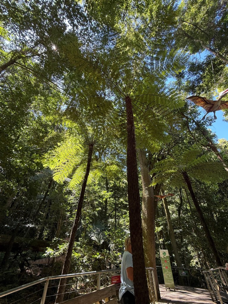 We took full advantage of all four sections and spent most of the afternoon enjoying the wonderful scenery from the rainforest floor to clifftop vistas. And we were enthralled by the realistic dinosaurs 😆.