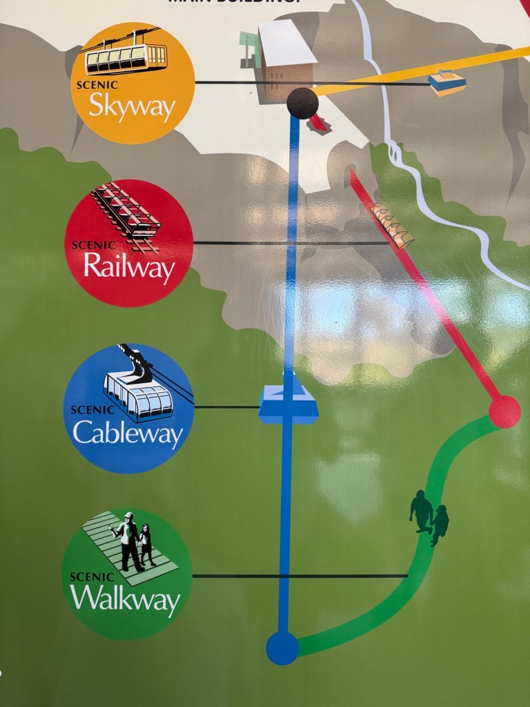 Scenic World is on the site of an old coal mine. The owners started tourist rides on the weekends on the incline railway while still operating the mine. Once mining stopped, the site expanded it’s tourist options with four sections: the skyway taking people horizontally from one cliff to another, the incline railway and the cableway taking people from the clifftop to valley floor, and walkways on the forest floor.