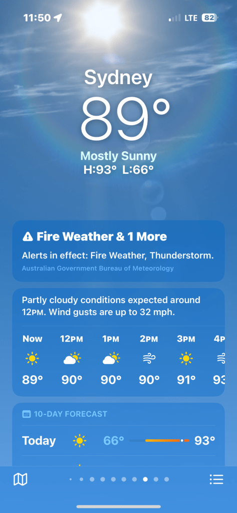 Today we left beautiful Sydney. My heart is sad because we really were enjoying our stay there, but it is hard to stay sad when you are headed out to exciting new adventures in a place you never dreamed you’d go! Tasmania is one of the six states that make up Australia, but it is the only one that is an island. Because it is off the southern coast of the continent (and thus further away from the equator), it is typically colder than the rest of Australia, and we are looking forward to some cooler temperatures. In fact, our weather in Sydney versus our weather in Hobart (the capital city) says this is definitely true!