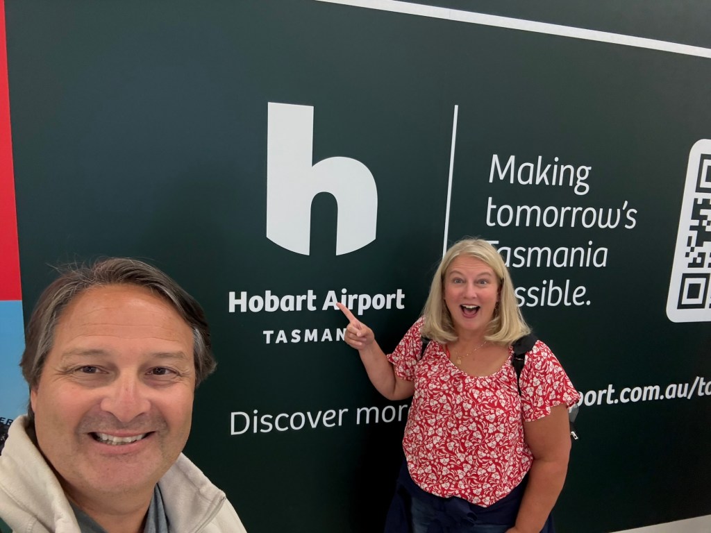 After a relatively smooth (albeit in a tiny, cramped Jetstar plane) flight, we arrived to a sunny day in Hobart. I made a nice new friend on the plane (Sally), and felt like I was channeling my mom. Rob and I often joke that on a typical plane flight, we finish half a book each, while my mom disembarks with 10 new friends. Hobart has a fairly small airport, so we were in and out and into our Uber pretty quickly.