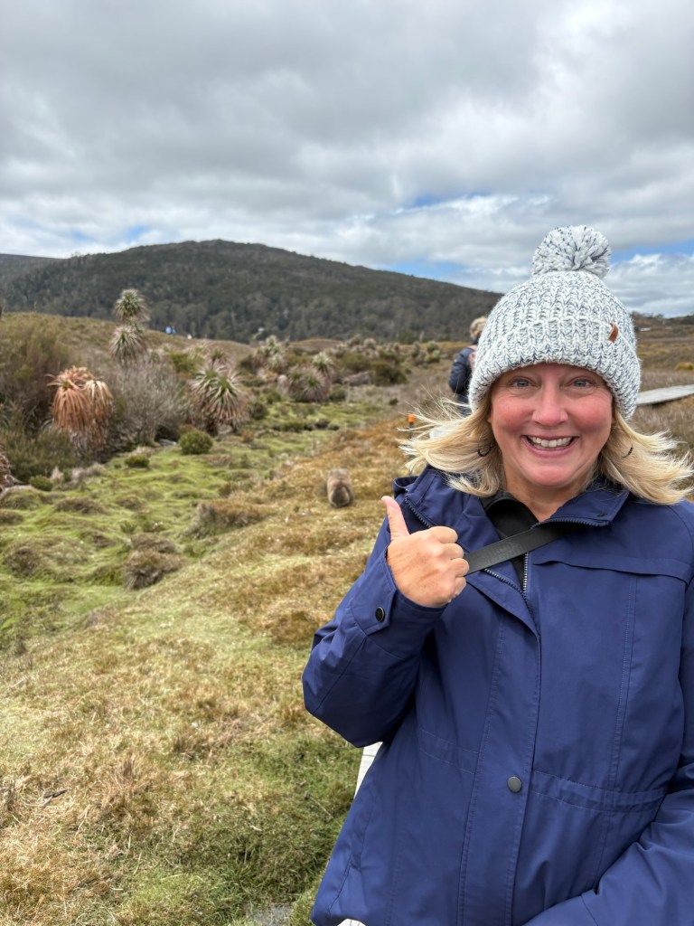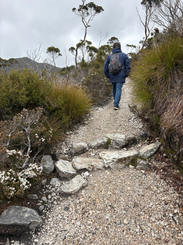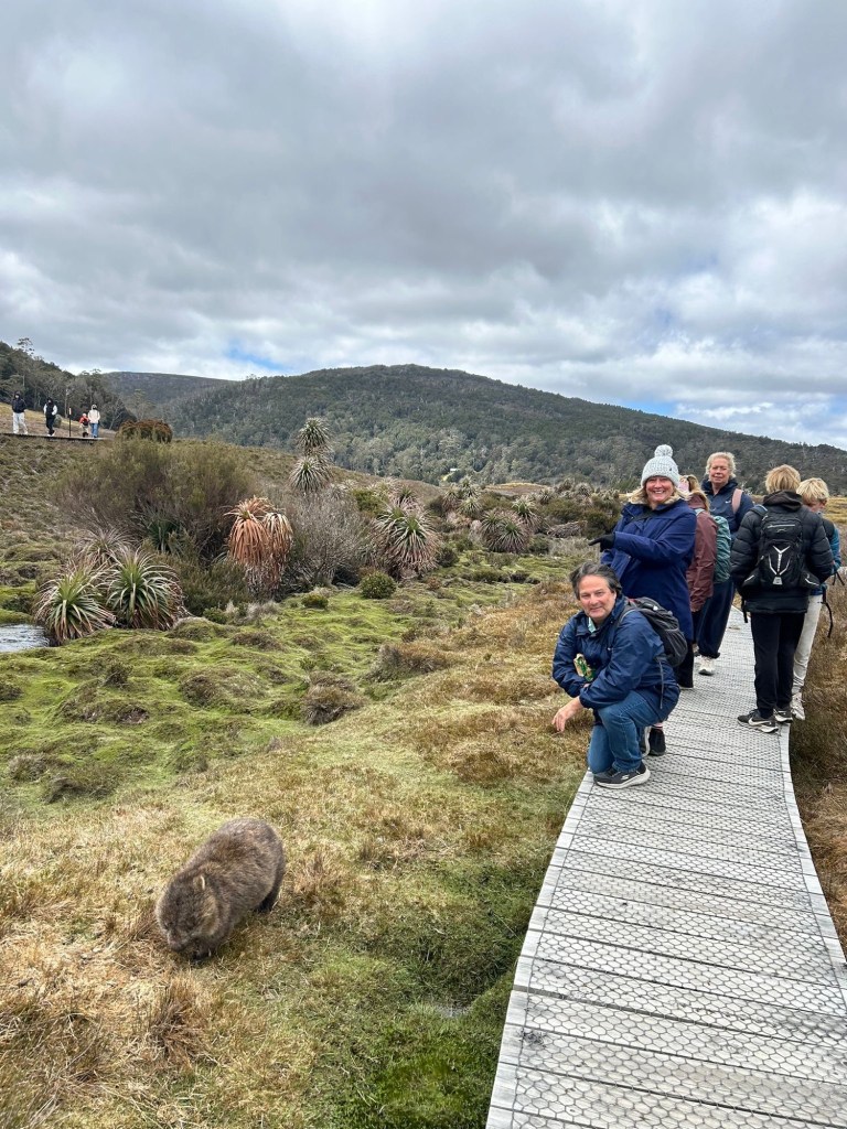 Today’s big event was time for hiking in Cradle Mountain National Park, situated in the heart of the Tasmanian Wilderness Heritage Area. There are multiple hiking options in the park with a wide range of lengths and difficulty. We decided on a 4 mile moderate difficulty hike that took us about 2.5 hours. This route included multiple summits, varied terrain, and a wide variety of beautiful landscapes. The pictures below, while nice, do not do justice to the beauty of this area. This was a great hike, at times cold, windy and exhausting, but well worth the effort.