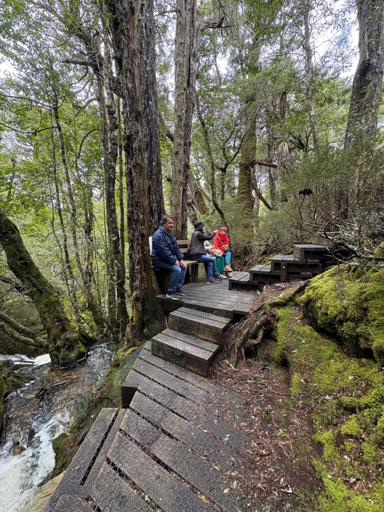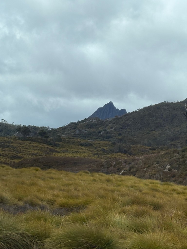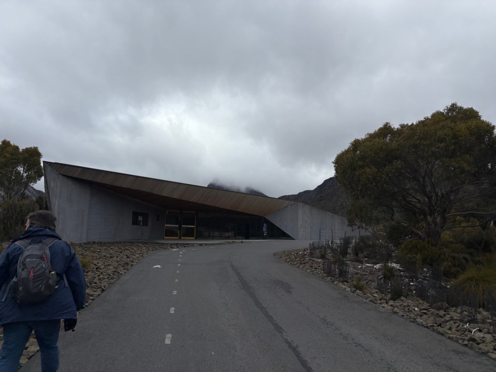 When LeBeaus depart at o’dark thirty while on vacation, it better be for something awesome, and… it was. We checked out of our little hotel in Strahan this morning with our tour group after a quick breakfast in town, and we hit the road. It was cold and sprinkling just a little this morning (nothing compared to yesterday’s gloom!), but it had mostly cleared up by the time we drove the 1.5 hours to Cradle Mountain National Park. Cradle Mountain NP is known for having lots of wildlife and jagged dolerite peaks, ancient rainforests, alpine moorlands, and glacial lakes. We were super excited about the wildlife spotting options.
