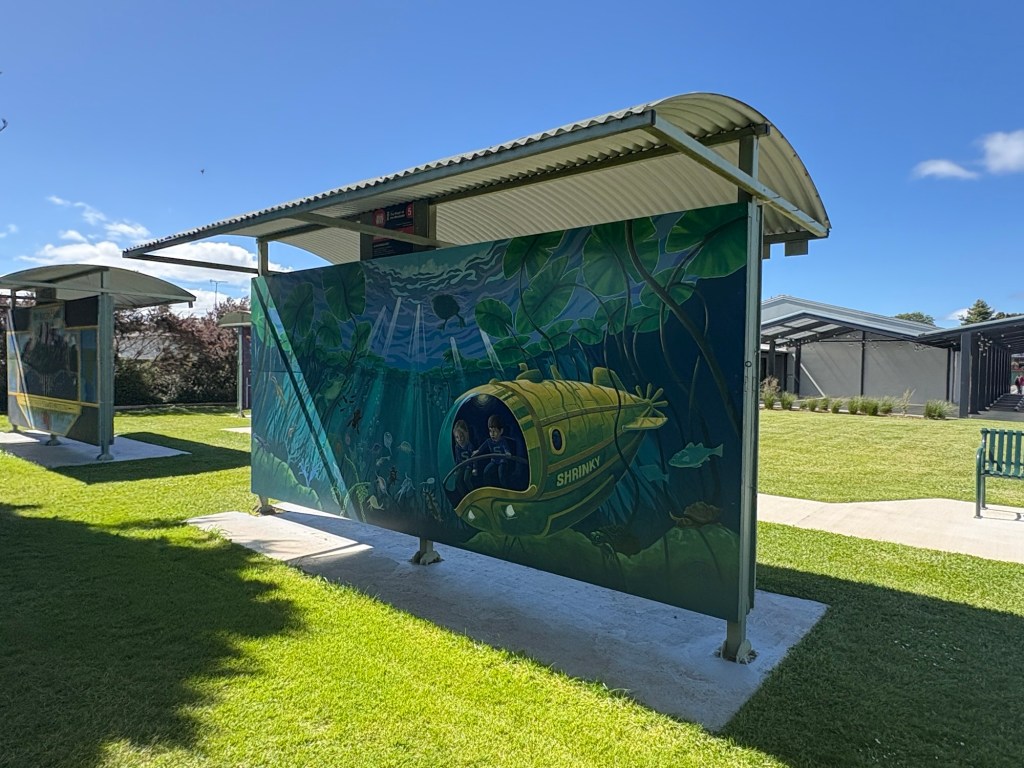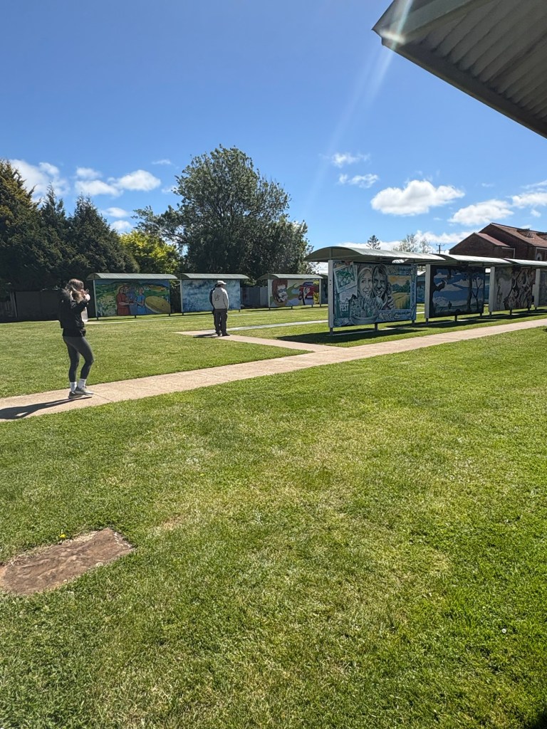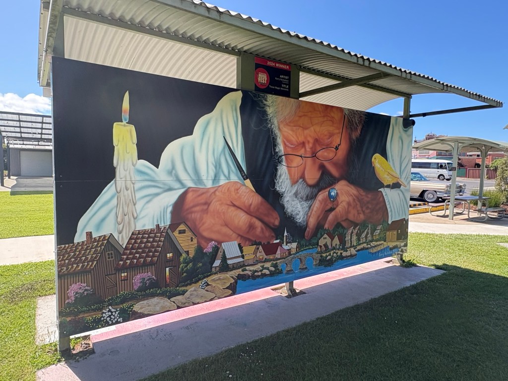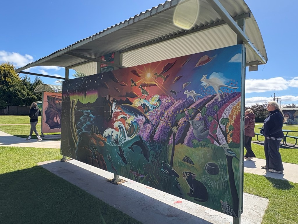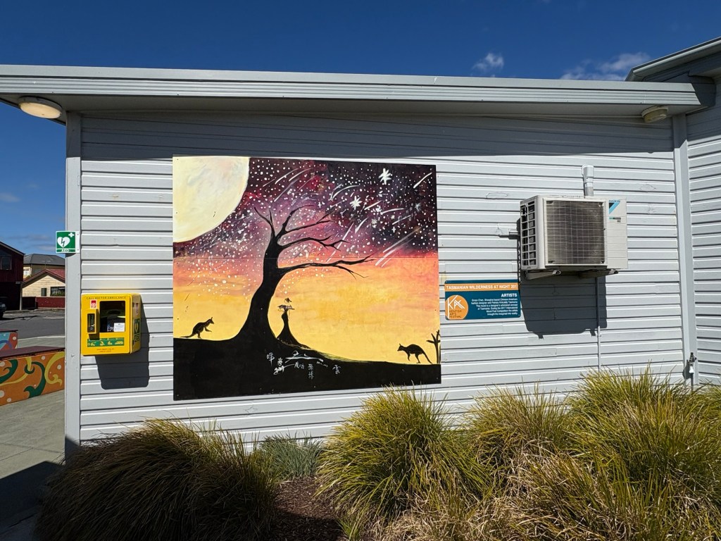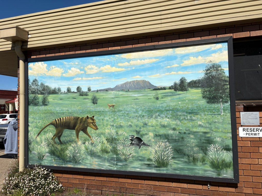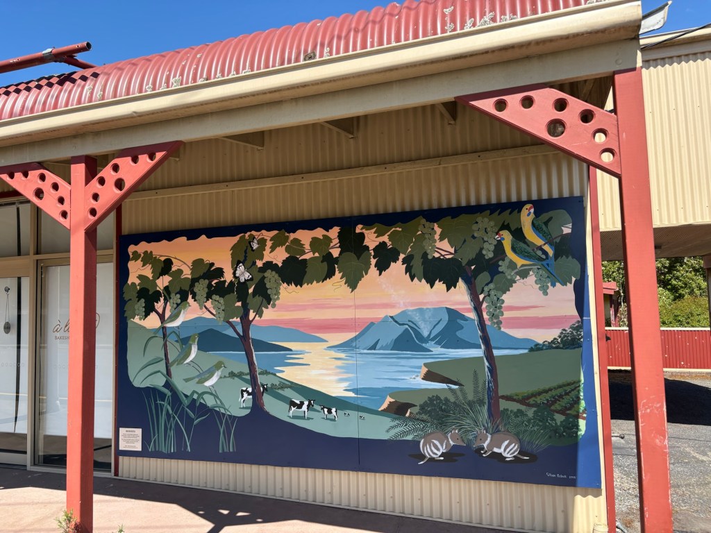 After we left Cradle Mountain NP, our tour group made a stop at a cute little town called Sheffield. According to our guide, several years ago this town came together to try to come up with a plan to increase tourism and get some of the people heading to nearby Cradle Mountain National Park to stop in their town. The result was the “mural plan”, and they commissioned a bunch of large murals around the town, and then started having contests for local artists to place murals around town. The result was quite popular, and they even have a mural festival every year and add to their collection. It was really cute!
