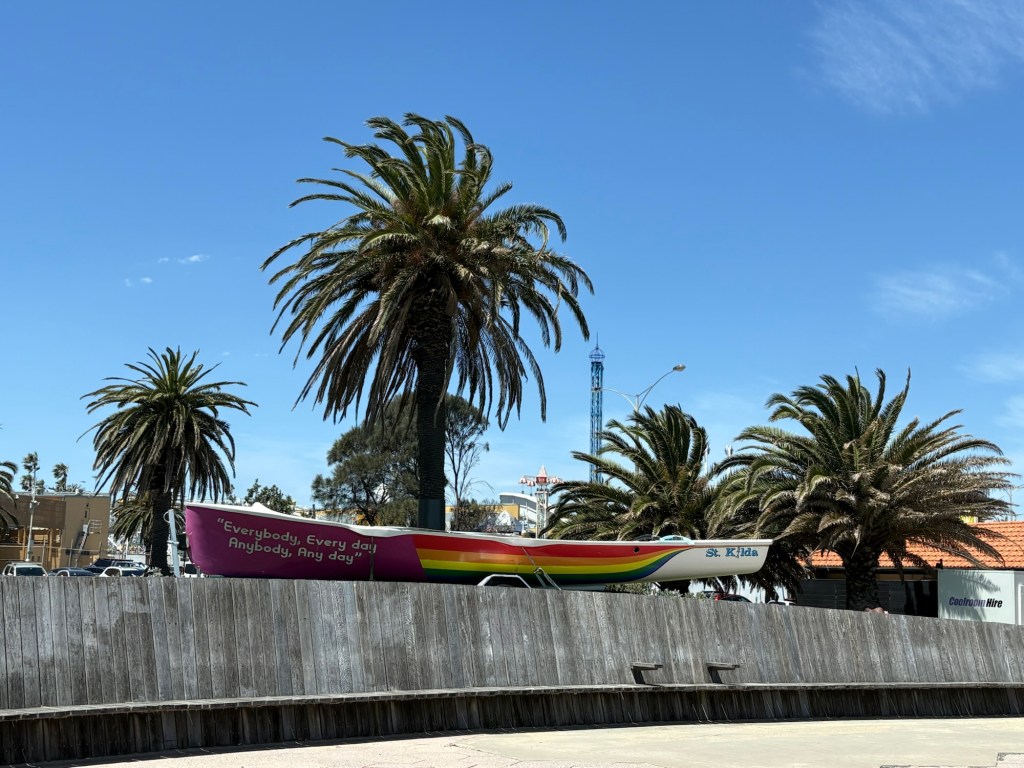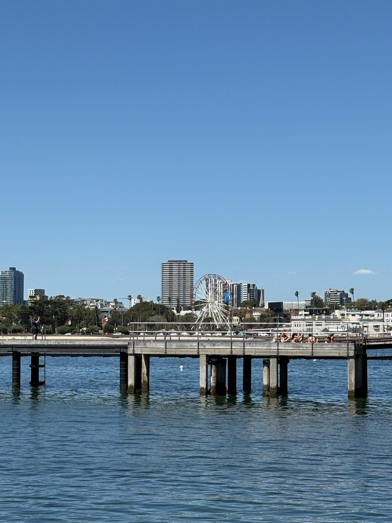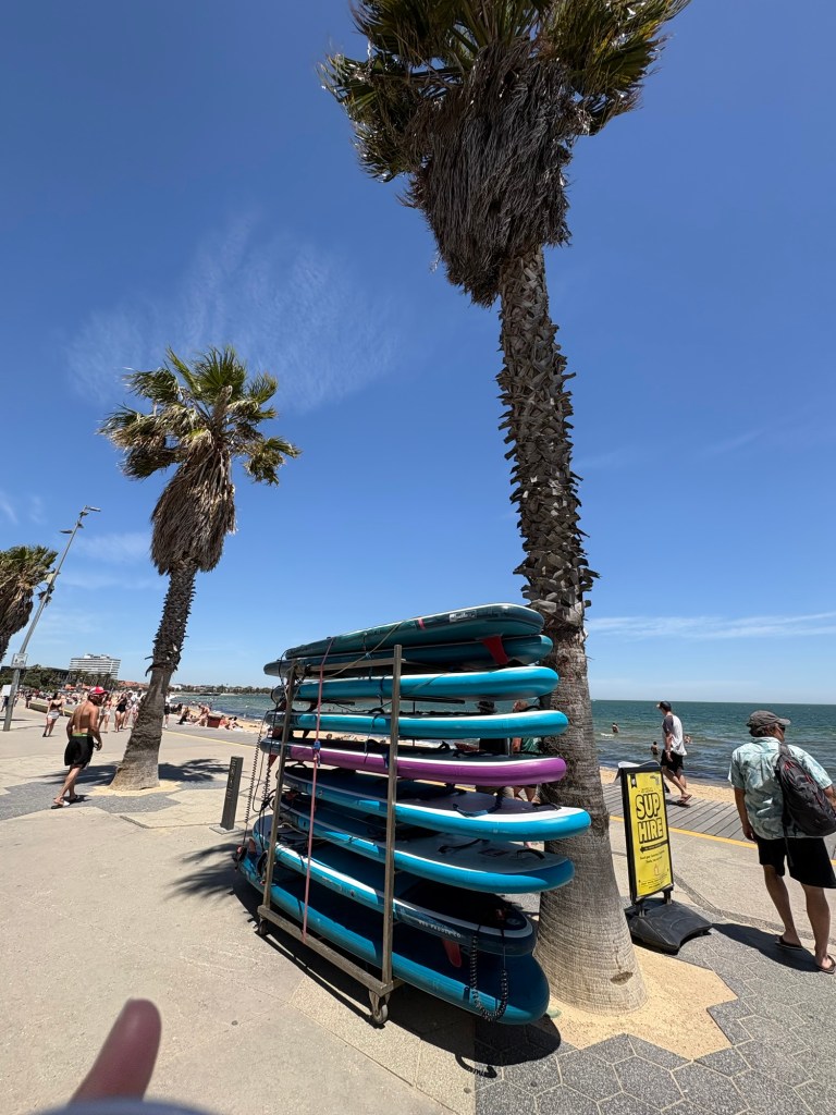 In distance it is only just over 2.5 miles from our place to the beach, but in practice it was pretty brutal. After a 30 minute, standing-room only tram ride glued next to a boat ton of sweating, swearing teenagers and overheated wannabe-be beachgoers, we finally made it to lovely St Kilda Beach. We spent a great afternoon swimming, sunning, reading, and walking the beach and pier areas. St. Kilda’s also has it’s own colony of penguins that nest there at night!