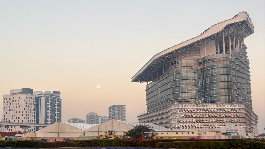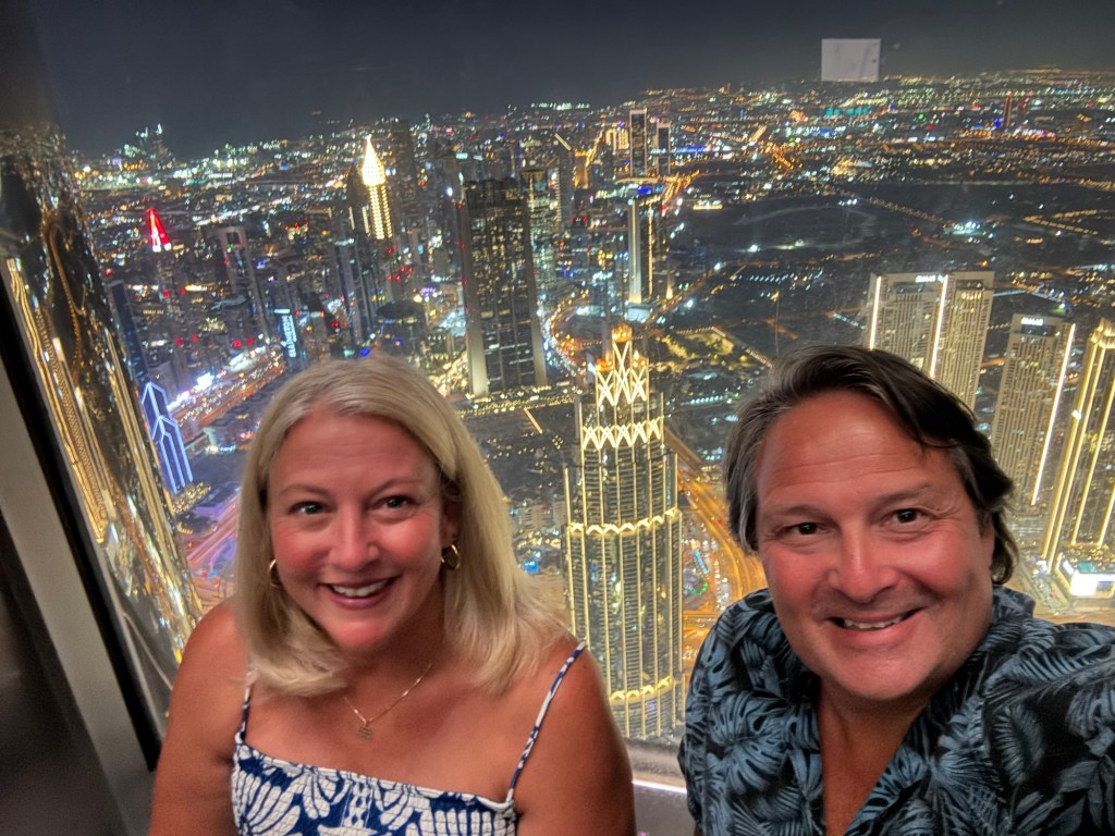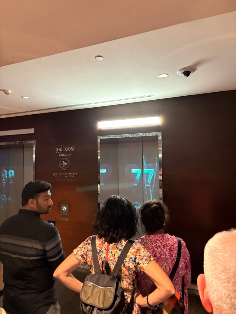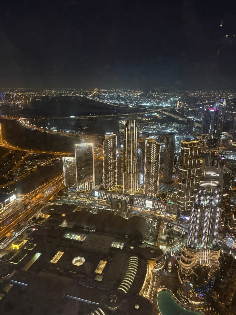 We chose to go to the observation deck at sunset, and bought our timed entry tickets accordingly (you are only allowed 30 minutes at the top). What they DON’T tell you, however, is that the line to get on the elevator to the top (even when you prepurchased your tickets) is over an hour to go up, and another hour to go down. So, we missed sunset 😢, but the views were still lovely. The tower is also attached to the huge Dubai Mall, so we enjoyed walking thought there and having dinner in one of their food courts. I finally tried Dubai chocolate tonight- yum!