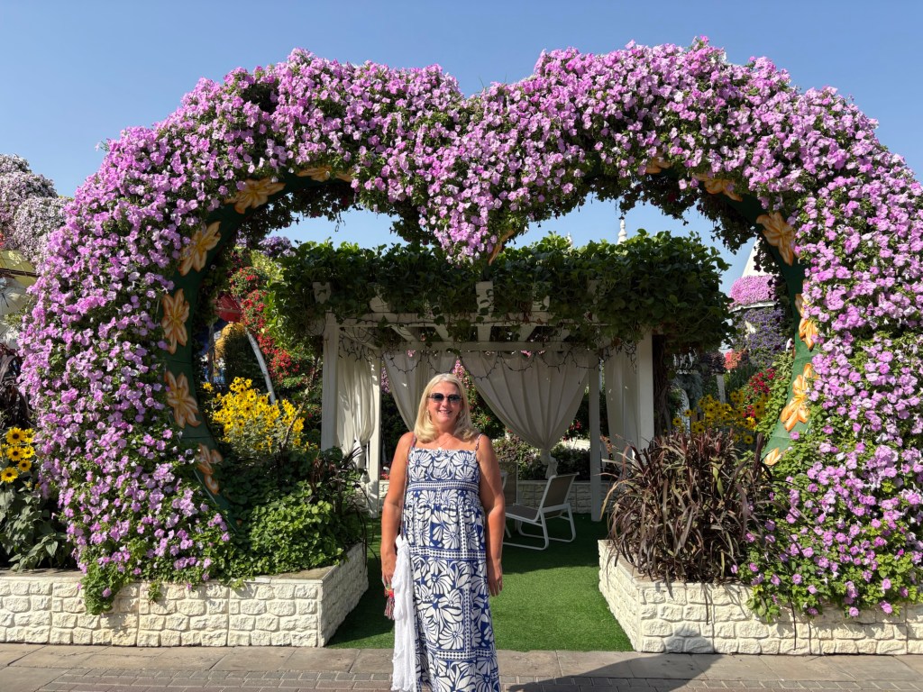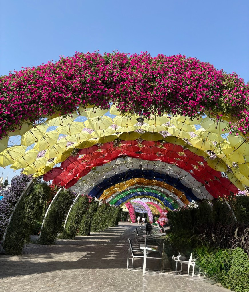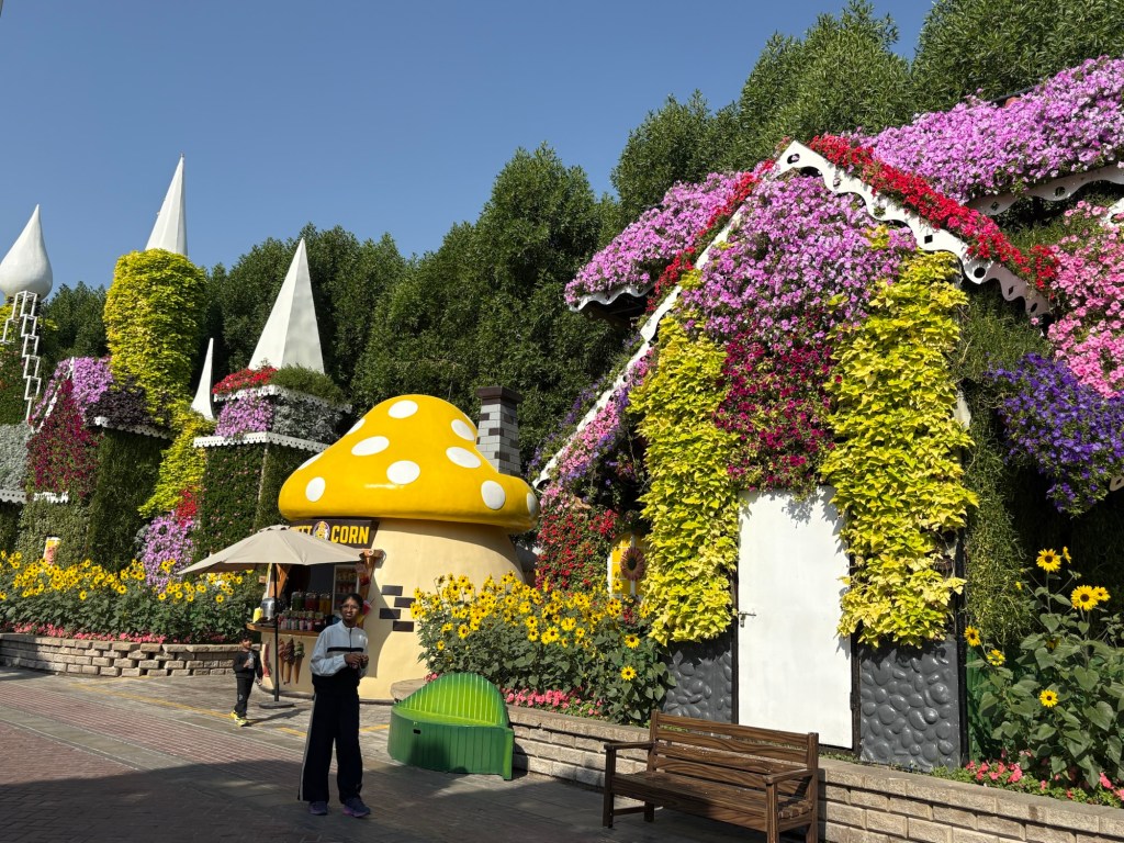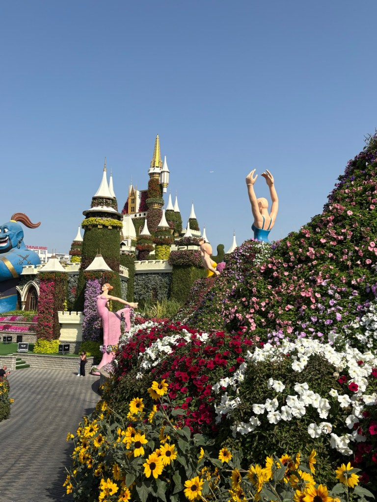 With huge thanks to the lovely front desk clerk, they let us check in early so we got to drop off our things, shower, and change clothes before we headed back out to our first ticketed event of the day: the Dubai Miracle Garden!