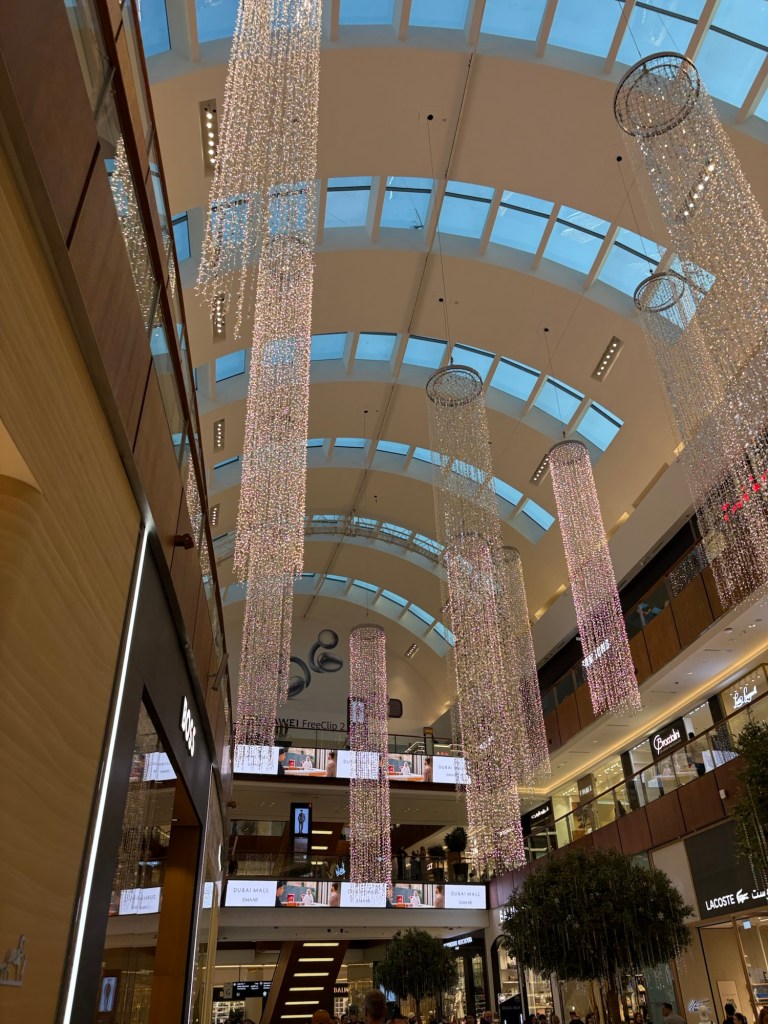Whenever we enter a new country, one of my favorite things in the first day or two we are there is to just kind of soak up the similarities and differences between where I am and what I am used to. Today I soaked in the city’s similarities to big cities back home, particularly Las Vegas, in the hustle and bustle and incredible architecture. I also loved seeing all the signs in both Arabic and English, and seeing just how very international this city is. We’ve seen people from all over the world here already! There have also been some surprises, such as seeing Christmas decorations and hearing Christmas carols played at the gardens and the mall! I had some worries (particularly as a female) about my clothing choices and other aspects of being here, but in this big city, my worries have been unfounded. Workers we have interacted with have all been helpful and friendly, and as for clothes- anything seems to go.