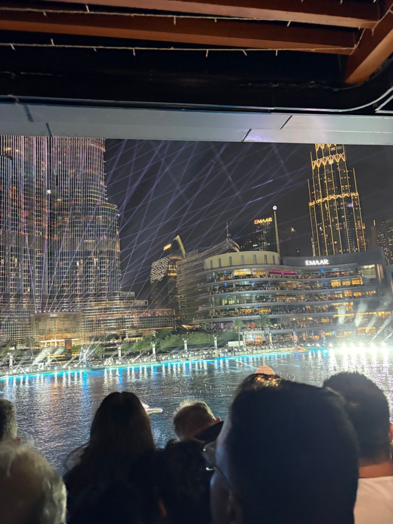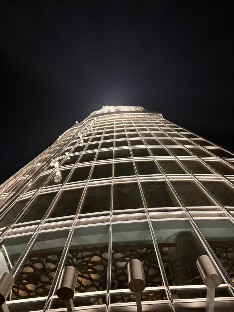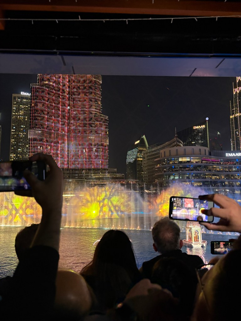 The Dubai Fountain is the world’s tallest performing fountain. It sits at the foot of Dubai Mall, and the water jets are laid out over an area the length of two football pitches. The fountain jets up to 22,000 gallons of water as high as 140m in the air at any one time! Because the crowd was about five or six people deep all the way around the fountains, I only caught tiny glimpses of the water show from the camera of the woman in front of me. Mostly, I stared at the backs of people’s heads and some arms. 😂 I’m sure it was a lovely show, but I can’t personally recommend it.