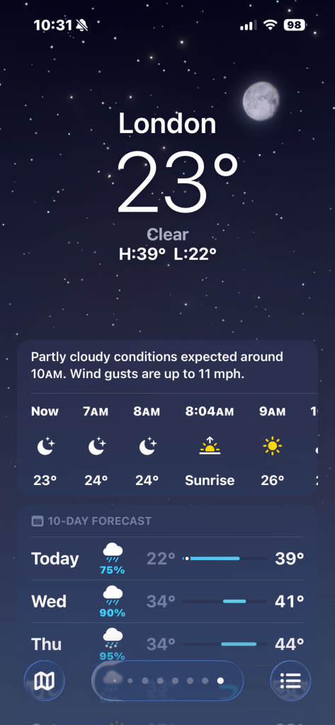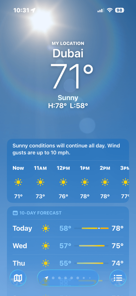 And we are off today to England, our final country before we return to the United States! We left beautiful, balmy Dubai early this afternoon to… this. 😵💫😬🥶