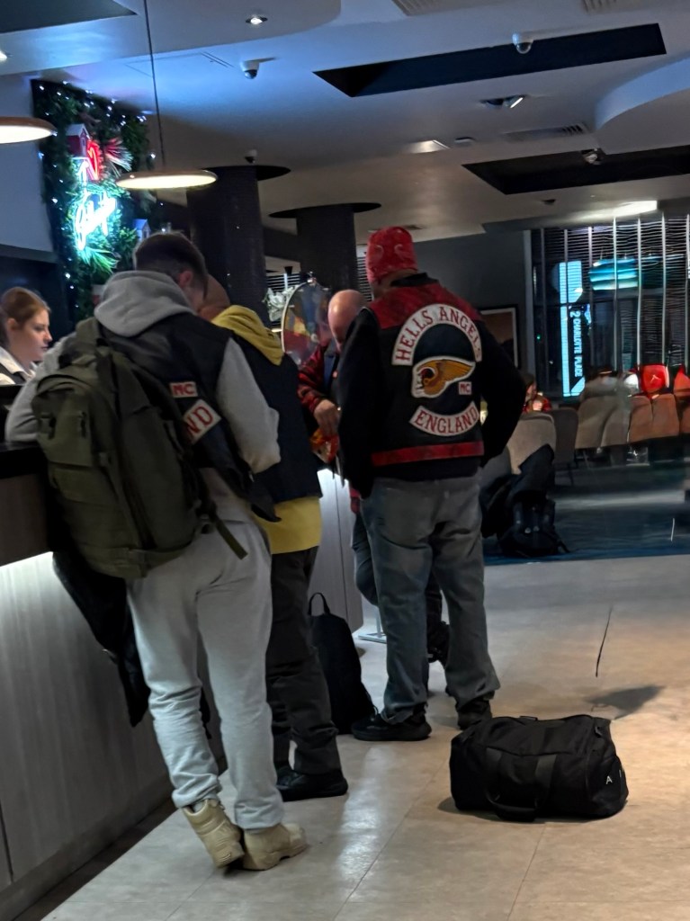 Welcome to the sleepy little port town of Southampton, England, where the LeBeaus await their boarding passage on the Queen Mary 2, along with… oh… an entire international cadre of Hell’s Angels!!! I am certain “Hell’s Angels” and “The Queen Mary” were two phrases I never planned to use together in a sentence, but here it is on my Bingo card. We have checked in to our medium nice (Holiday Inn-ish or older Marriott vibes) hotel only to find it is the weekend meeting spot for an entire gang of European and international Hell’s Angels. In and of itself, they have proved lovely and reasonably quiet neighbors (other than an early morning very rumbly start to the day as they take off on their bikes ), and my only complaint is an inability to get in or out of the hotel due to the blockade of smokers lined up out front in the cold (I mean, who’s going to tell them to move?!). To be honest, Rob and I are praying that some of these guys actually DO come on the Queen Mary tomorrow… that stodgy old ship won’t know what hit it. We want to have a beer with them in the pub on the Mary… now THAT would be a trip memory!