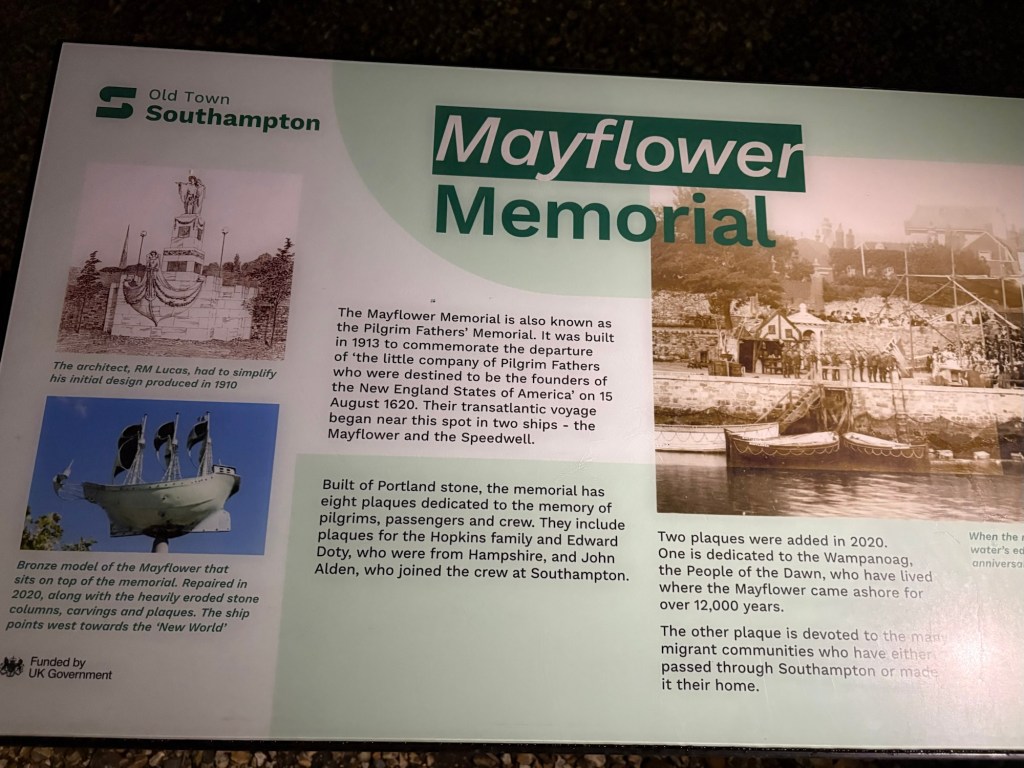 • The Mayflower departed from Southampton carrying Pilgrims to the New World in 1620. They even have a monument to it here (pics below), which struck us as a bit odd, but we didn’t build it.